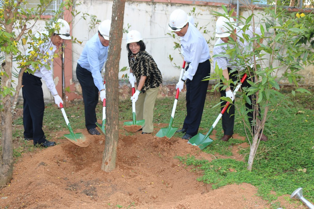 Ban lãnh đạo Công ty Truyền tải điện 4 trồng cây lưu niệm trong khuôn viên trụ sở của Đội TTĐ. Đồng Xoài.