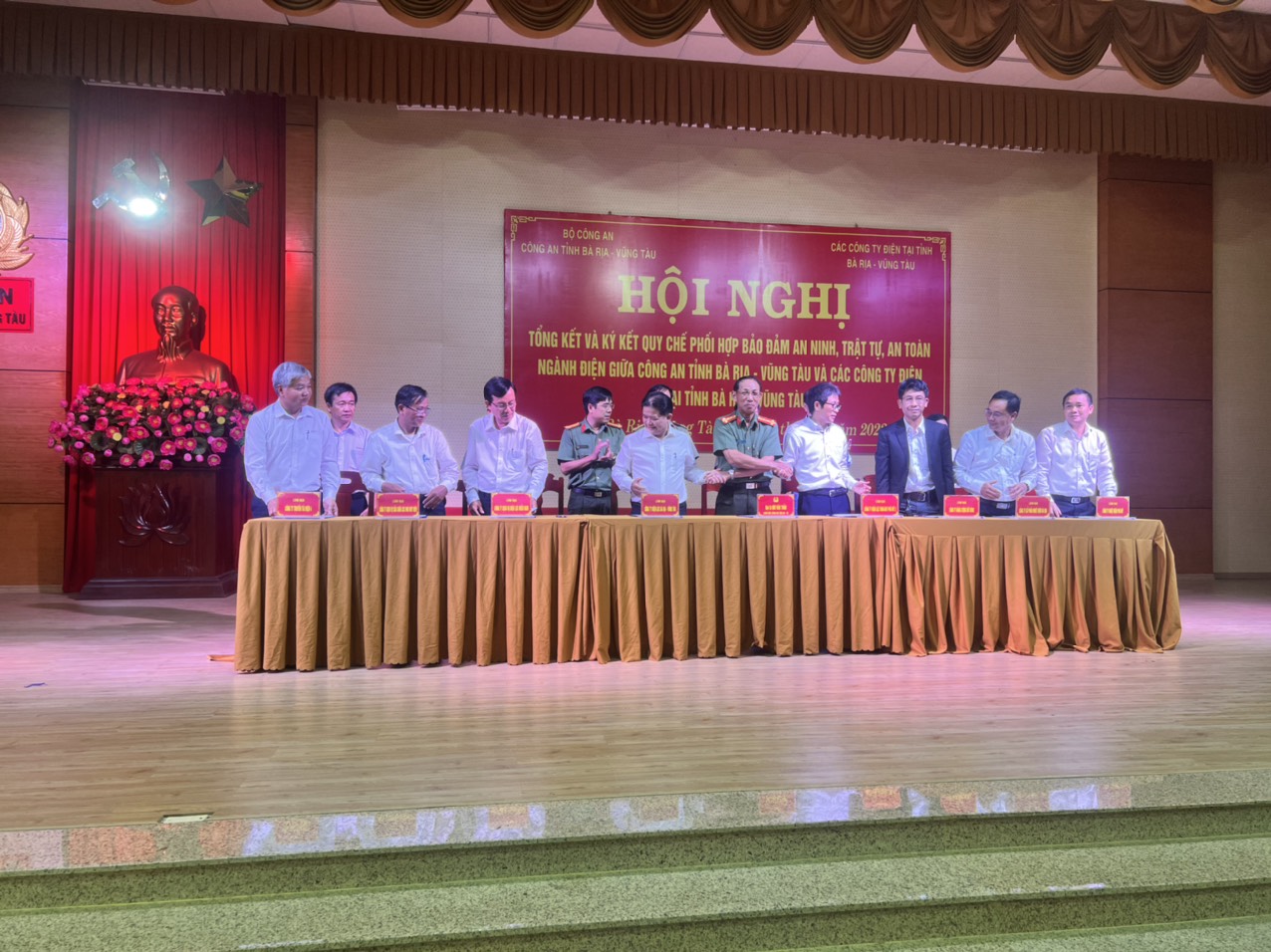 Đến dự, điều hành và phát biểu chỉ đạo Hội nghị có Đại tá Bùi Văn Thảo, Giám đốc Công an tỉnh, đại diện Công an cấp Huyện thuộc tỉnh Bà Rịa - Vũng Tàu; ông Võ Đình Thủy, Giám đốc Công ty Truyền tải điện 4 (PTC4) và Giám đốc, Phó Giám đốc các đơn vị ngành Điện khác trên địa bàn, gồm Công ty Điện lực Bà Rịa - Vũng Tàu, Công ty Nhiệt điện Phú Mỹ, Công ty TNHH Điện lực BOT Phú Mỹ 3, Công ty Dịch vụ Điện lực miền Nam (trước đây là Công ty Lưới điện cao thế miền Nam) thuộc Tổng công ty Điện lực miền Nam, Công ty CP Nhiệt điện Bà Rịa, Công ty Dịch vụ sửa chữa các Nhà máy điện thuộc Tổng công ty Phát điện 3, Công ty Năng lượng MêKông, Truyền tải điện miền Đông 1 (PTC4).