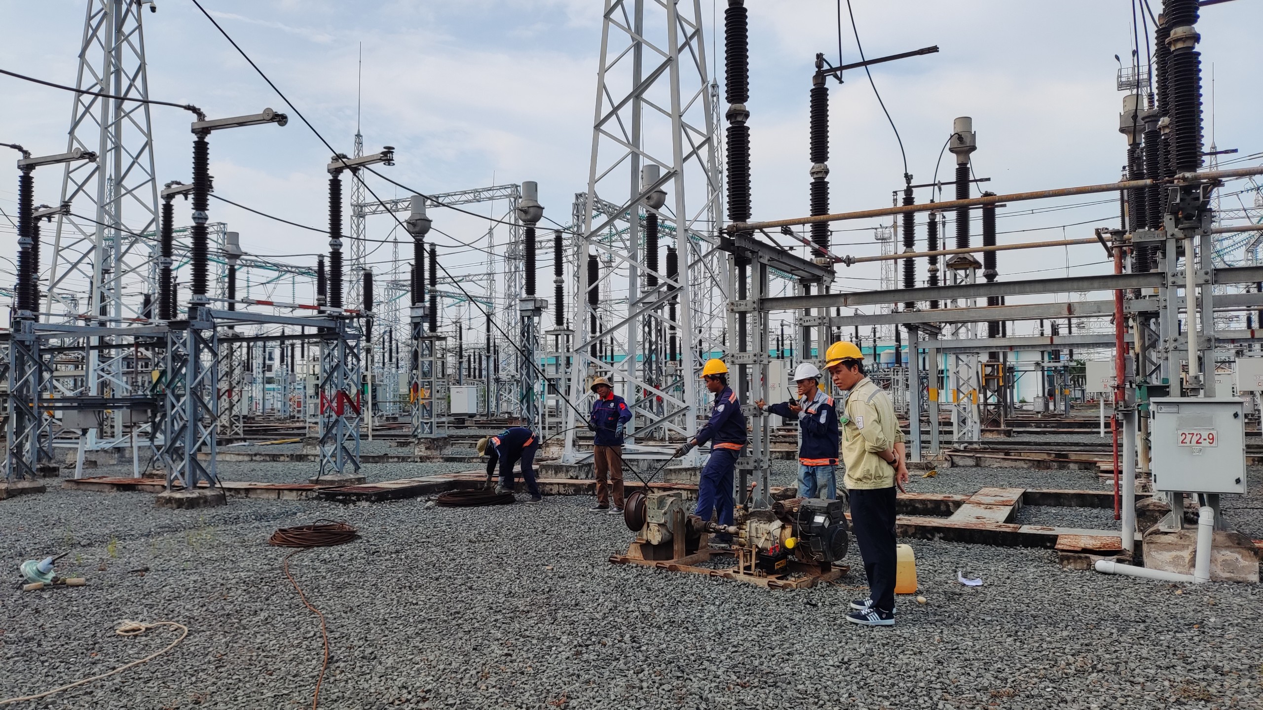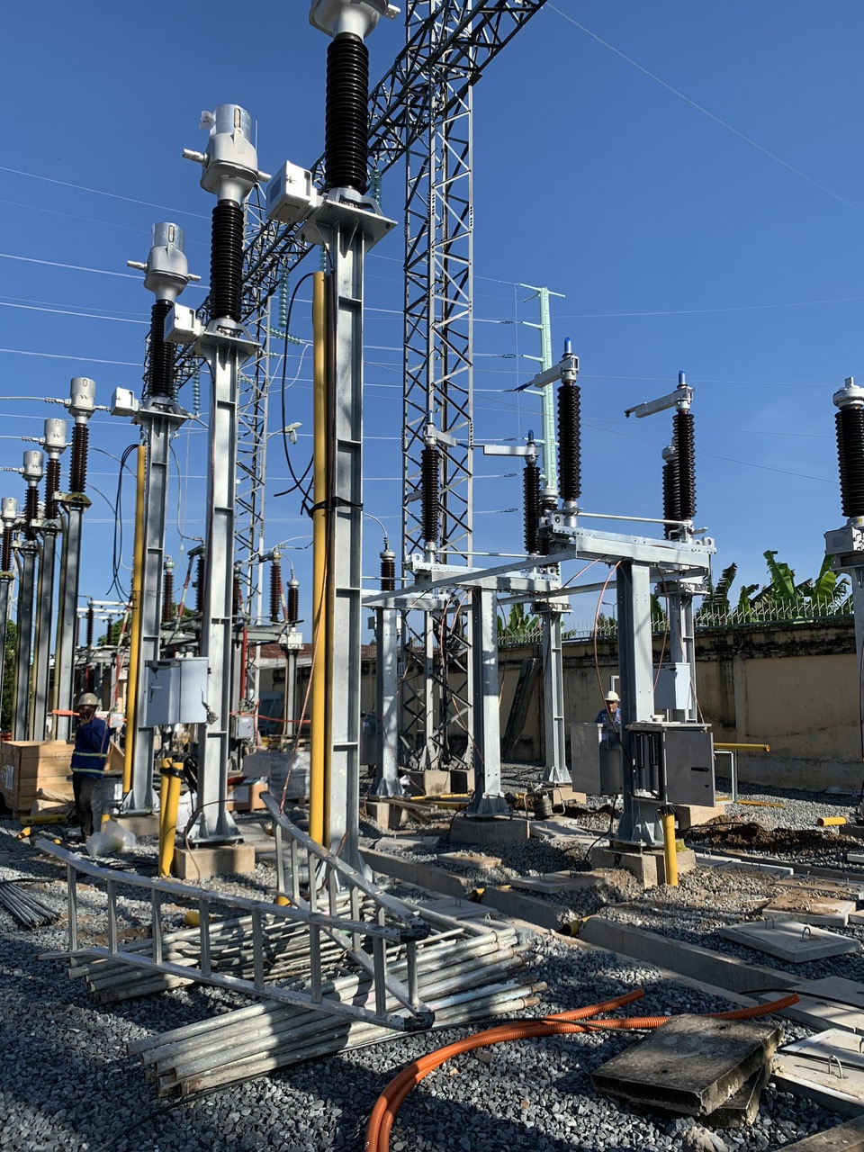 Thi công công trình lắp đặt 2 ngăn lộ 110kV tại TBA 220kV Trà Vinh.