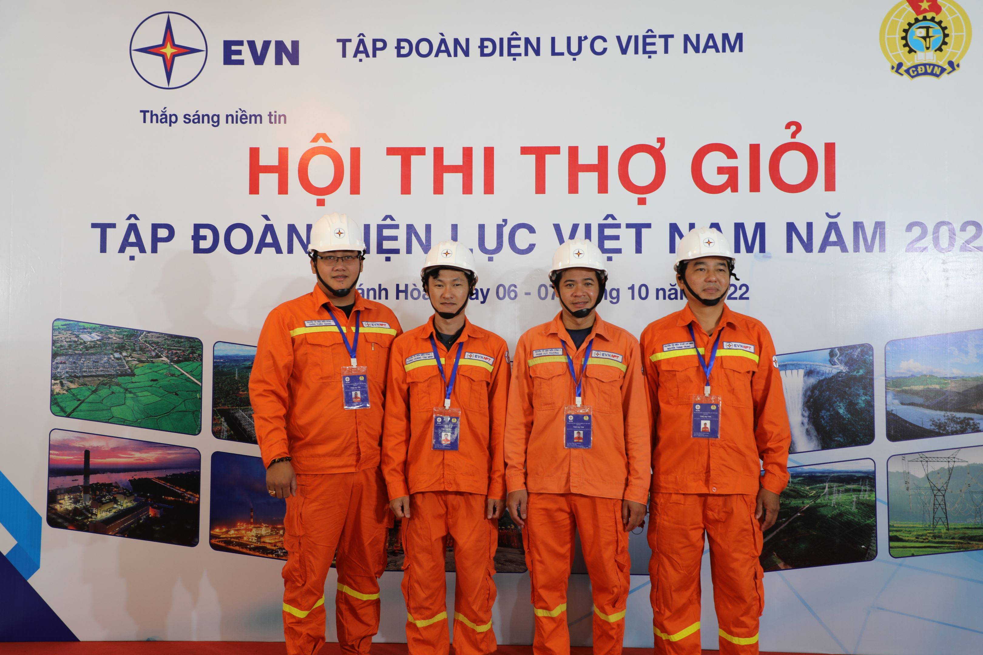 Đội thi Công ty Truyền tải điện 4 chụp hình lưu niệm với Lãnh đạo EVN và Lãnh đạo Công ty