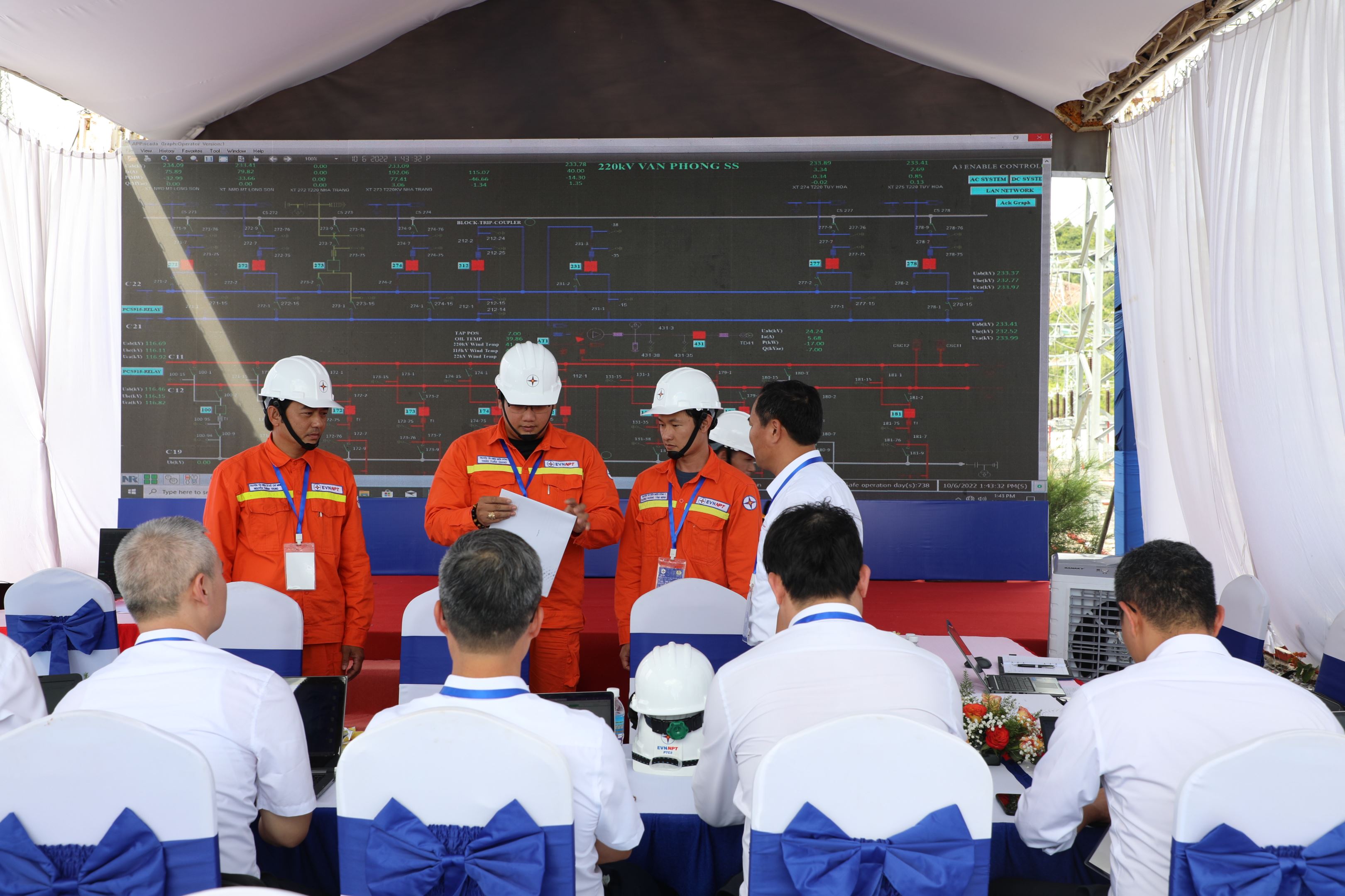 Tiếp tục sáng ngày mai 07/10/2022, đội thi sẽ hoàn tất phần thi nghề vận hành trạm biến áp (phần thực hành) và nghề quản lý vận hành đường dây. Kết quả sẽ công bố sau 4 đội thi của 4 Công ty Truyền tải điện thi xong vào chiều cùng ngày.