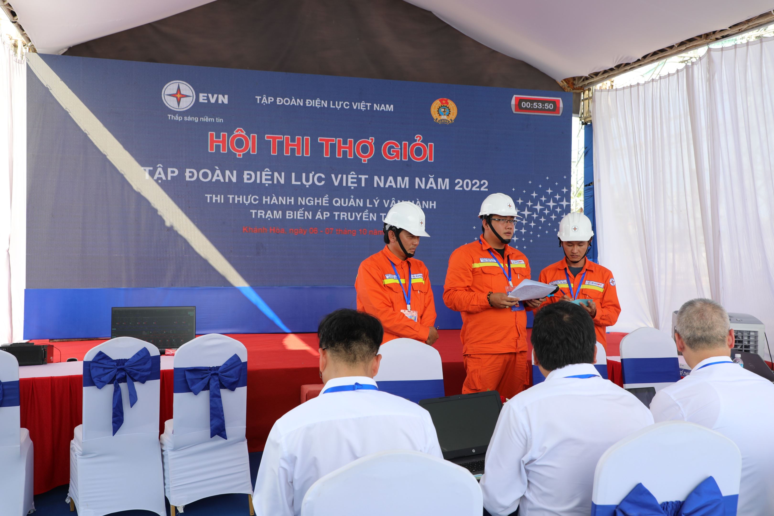 Buổi chiều, cả 3 đội thi Công ty di chuyển ra hiện trường tại Trạm biến áp 220kV Vân Phong. Theo thứ tự bốc thăm, đội thi Công ty Truyền tải điện 4 thi nghề Vận hành trạm (phần vấn đáp) đầu tiên đã trả lời lưu loát 3 câu hỏi của Ban Giám khảo. Kế trạm, đội thi nghề điều khiển UAV thi thứ tự thứ 2 cũng tự tin với đề thi phát hiện những khiếm khuyết, bất thường mà Ban Tổ chức tạo hiện trường giả trên tuyến dây 220kV Vân Phong – Nha Trang.
