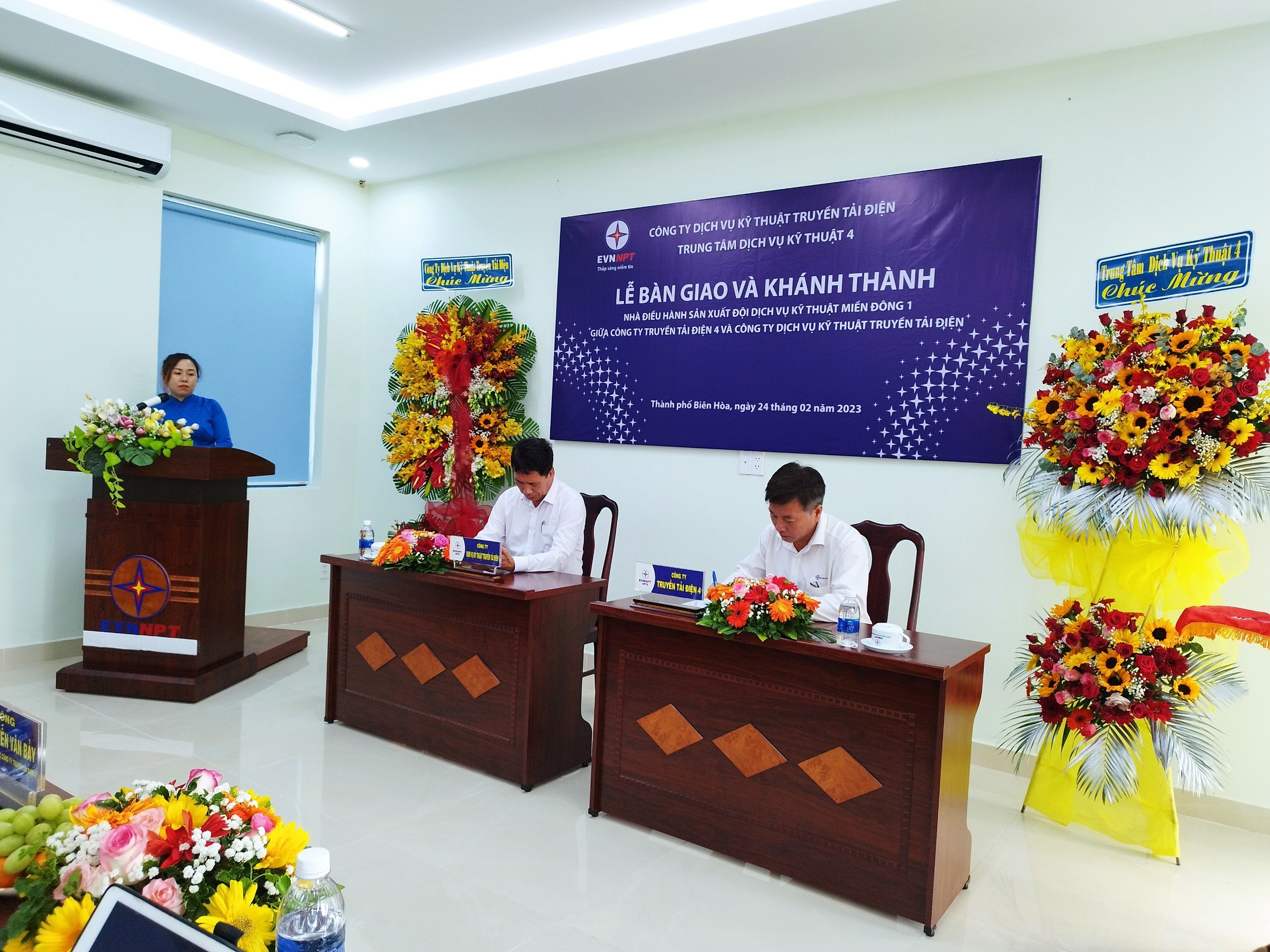 Trong không khí hân hoan, vui mừng của toàn thể Cán bộ công nhân viên Đội DVKT miền Đông 1, đơn vị Chủ đầu tư (PTC4) do Ông Nguyễn Văn Bảy – Phó Giám đốc PTC4 và Đơn vị sử dụng (NPTS) Ông Nguyễn Tiến Dũng – Giám đốc NPTS đã thực hiện việc ký kết bàn giao công trình để đưa vào hoạt động.