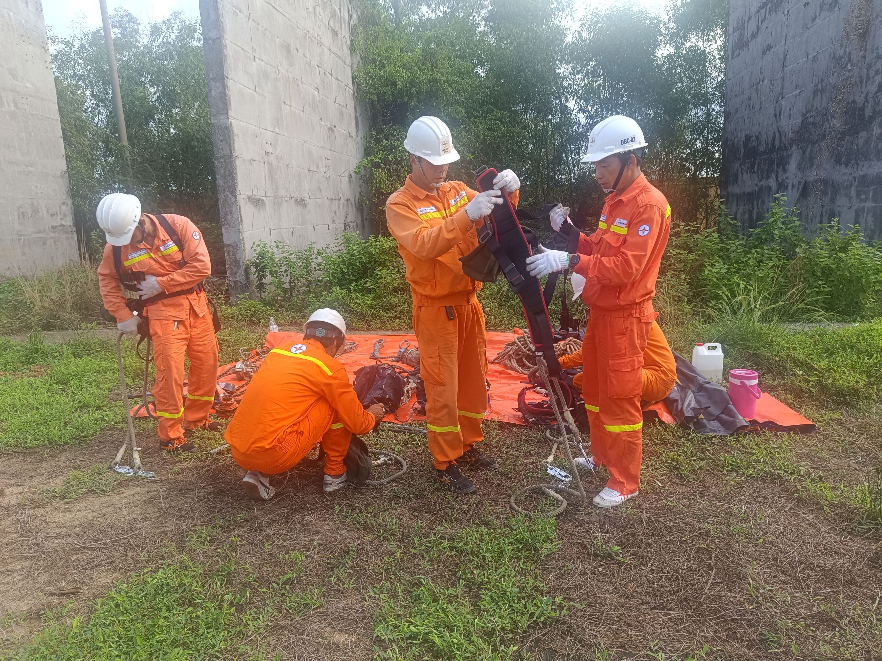 Công tác tổ chức và thực hiện thao diễn tại hiện trường bãi tập đạt yêu cầu đề ra; Các truyền tải chuẩn bị tốt về nhân sự; trang bị phương tiện bảo vệ cá nhân, dụng cụ an toàn, dụng cụ thi công, vật tư đầy đủ và đạt yêu cầu trước khi thi công, tại hiện trường các dụng cụ an toàn, dụng cụ y tế, dụng cụ thi công đều được bố trí khu vực riêng, sắp xếp gọn gàng, khoa học; Trước khi thực hiện công tác, các đơn vị thi công đã tổ chức nghiên cứu kỹ phương án, phổ biến, họp bàn phân công nhiệm vụ thực hiện cho từng nhóm công tác, từng công nhân tham gia diễn tập; thực hiện sinh hoạt đầu giờ và đánh giá rủi ro trước khi thực hiện công việc. Trong quá trình thực hiện diễn tập từng công đoạn được thực hiện bằng phương pháp thủ công, bắt đầu từ khâu giàn giá, treo puly, hạ dây chống sét, cắt ép nối, thay sứ cũng như sau khi hoàn tất, công đoạn tháo gỡ, thu hồi đều được các đơn vị thực hiện an toàn và đúng quy định.