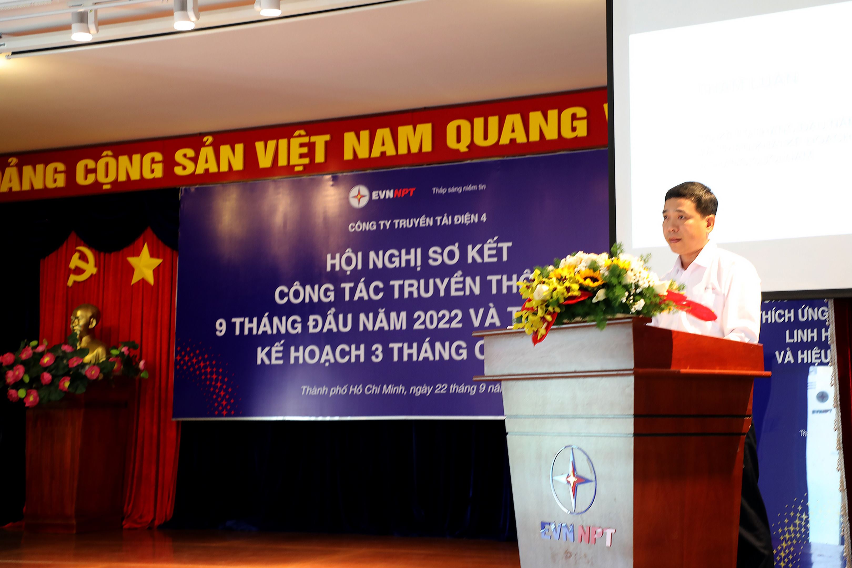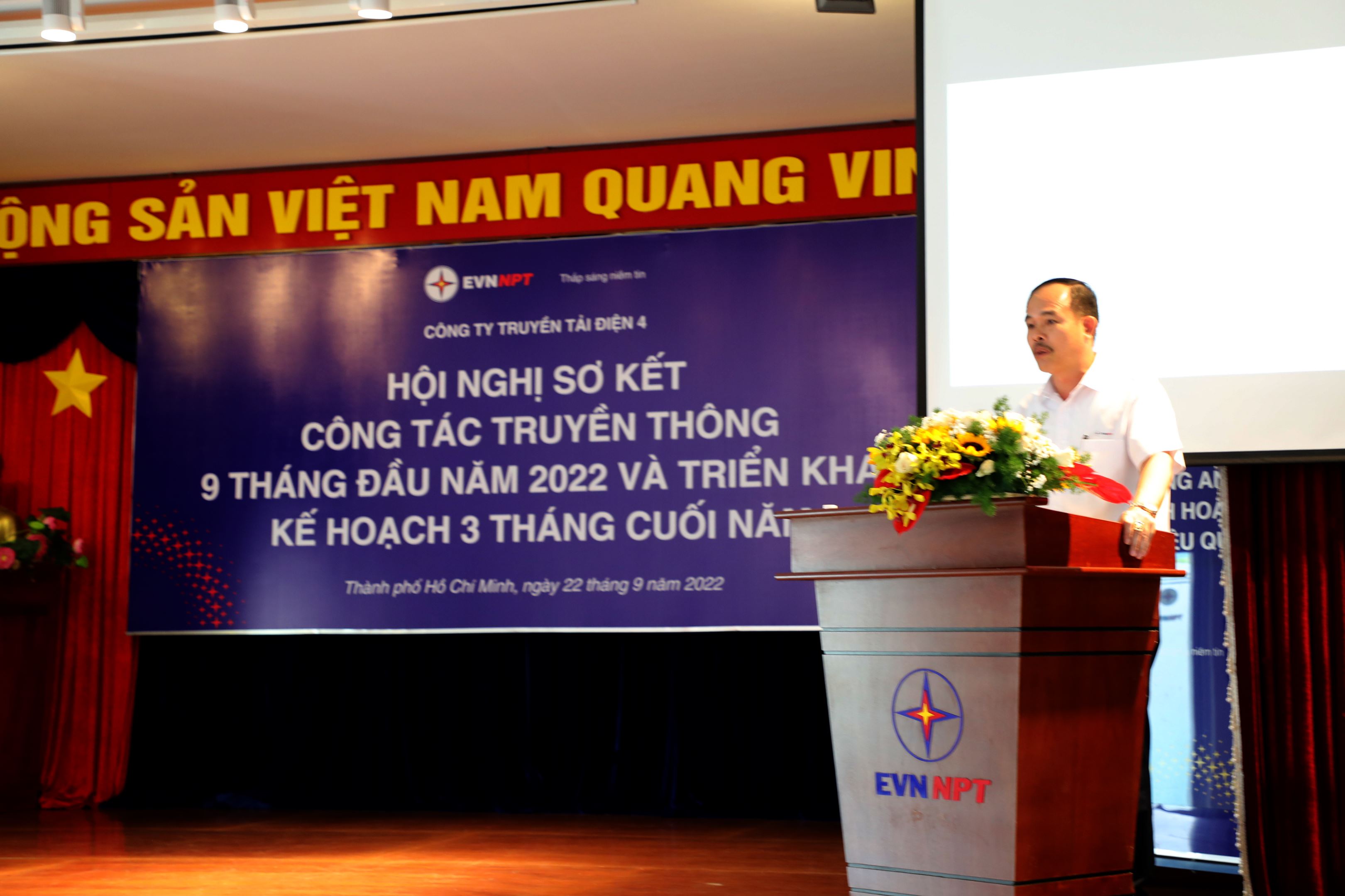 Tại hội nghị, bà Đặng Thị Hải Yến – Phó chánh Văn phòng, phụ trách công tác truyền thông Công ty đã trình bày sơ kết công tác truyền thông. Trong 9 tháng đầu năm 2022, Công ty đã xây dựng kế hoạch truyền thông và triển khai thực hiện công tác Truyền thông của Công ty Truyền tải điện 4, trong đó đẩy mạnh thực hiện Văn hóa EVNNPT, chú trọng xây dựng và thực hiện văn hóa số và công tác truyền thông trong điều kiện thích ứng an toàn, linh hoạt để nâng cao hiệu quả hoạt động của EVNNPT theo tinh thần Nghị quyết 20/NQ-HĐTV ngày 31/12/2021 về các công việc và nhiệm vụ trọng tâm cần tập trung triển khai thực hiện trong năm 2022.