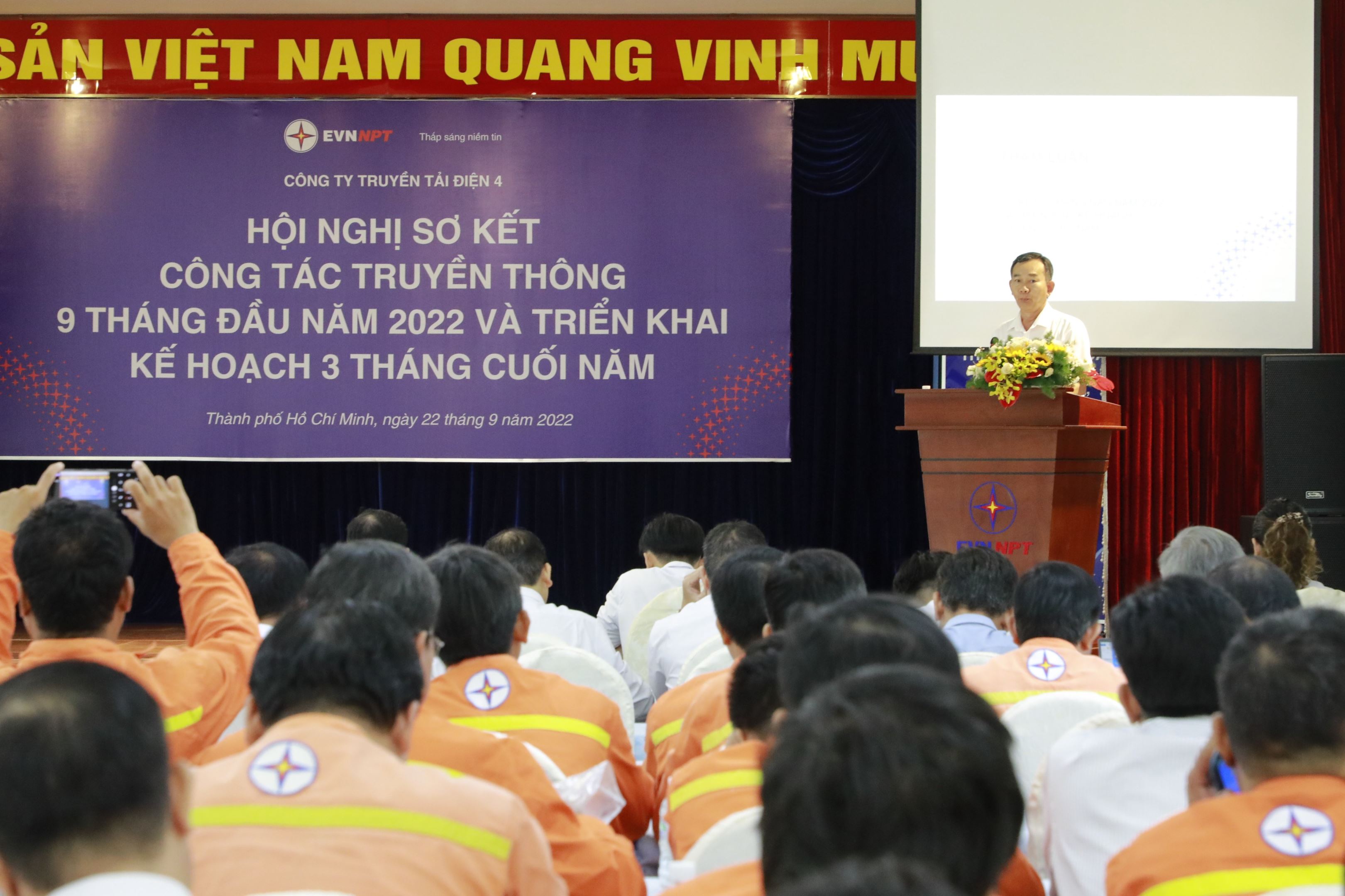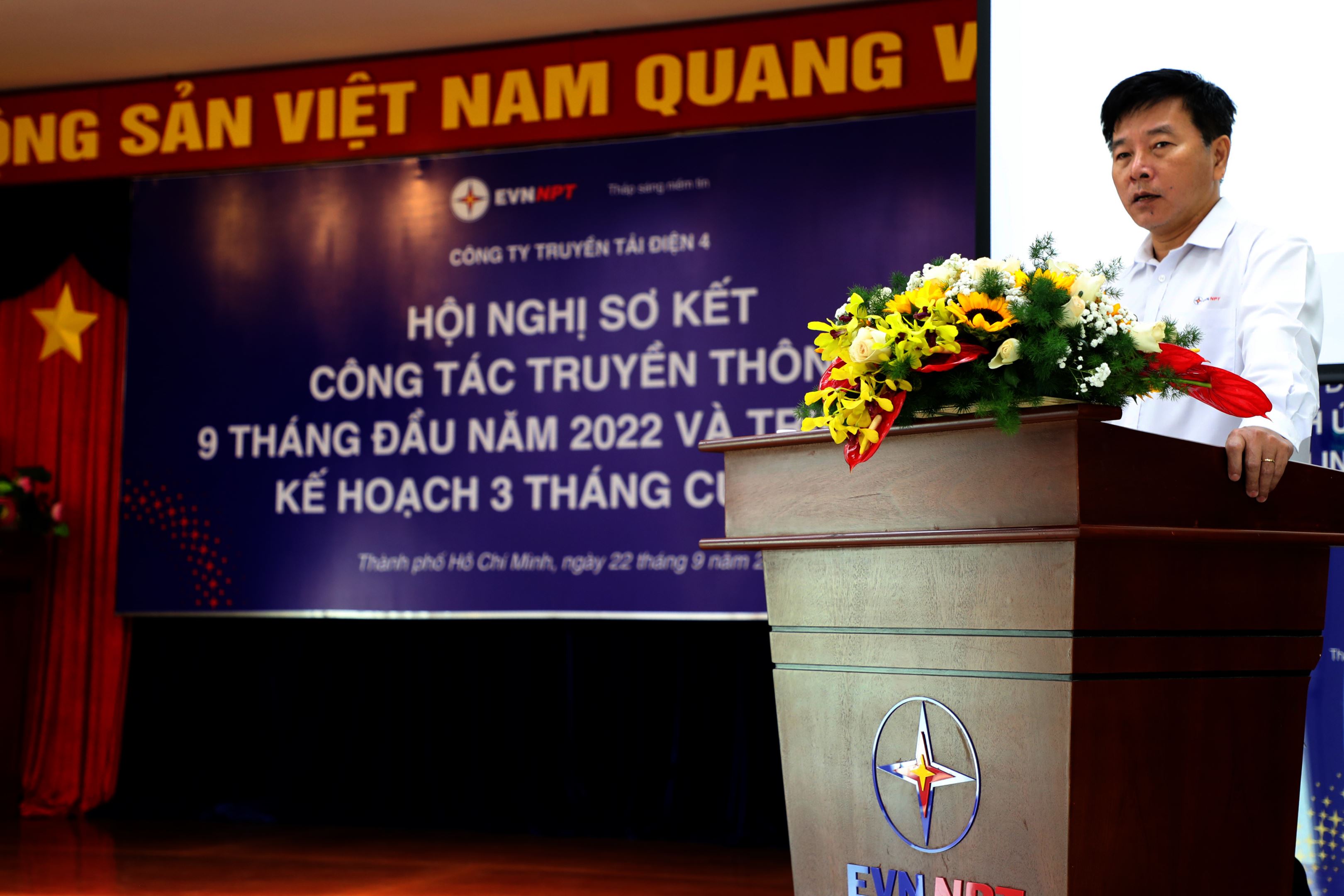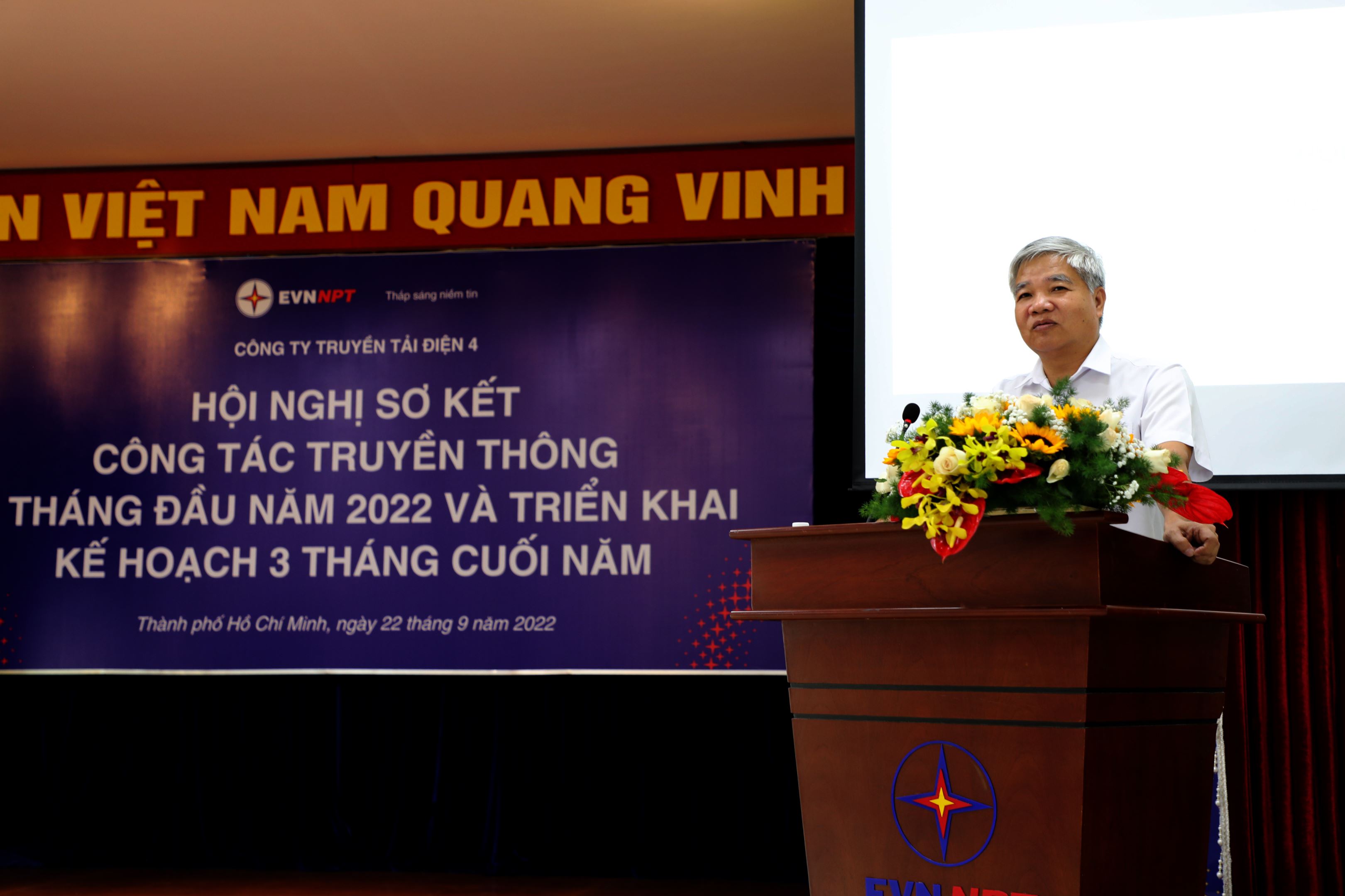 Phát biểu chỉ đạo tại Hội nghị, Ông Võ Đình Thủy – Giám đốc Công ty đã đánh giá cao những nỗ lực của các tập thể và các cán bộ truyền thông trong công tác truyền thông của Công ty Truyền tải điện 4. Công tác truyền thông của Công ty đã đạt chất lượng và chiều sâu, triển khai kịp thời các văn bản chỉ đạo của Tổng công ty và Công ty. Các đơn vị phối hợp tốt với bộ phận truyền thông Công ty tuyên truyền tất cả các mặt hoạt động của đơn vị và Công ty, đồng thời Giám đốc Công ty cũng nêu ra những mặt hạn chế cần khắc phục và các giải pháp trong công tác truyền thông, cần có sự đổi mới sáng tạo hơn nữa trong một số lĩnh vực truyền thông, từ đó tạo nguồn cảm hứng và nề nếp trong công tác truyền thông và khẳng định trên cơ sở mục tiêu tổng quát của Tổng công ty. Công ty xác định mục tiêu nhiệm vụ chủ đề năm năm 2022 là ”Thích ứng an toàn, linh hoạt và hiệu quả” góp phần xây dựng hệ thống truyền tải điện Quốc gia hiện đại, chuyên nghiệp và hiệu quả. Tiếp bước những thành quả đã đạt được trong 9 tháng đầu năm 2022 và thực hiện kế hoạch 3 tháng cuối năm 2022 của công tác truyền thông một cách tốt nhất, tập thể lãnh đạo và CBCNVC Công ty cố gắng nổ lực với truyền thống và tinh thần đoàn kết nhất trí cao để hoàn thành xuất sắc mọi nhiệm vụ được giao.