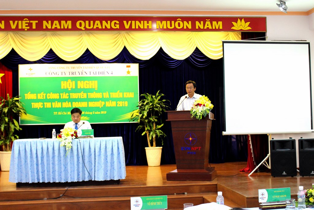 Tổng kết hoạt động truyền thông tuyên truyền năm 2018, ông Lý Ngọc Khánh, Phó Giám đốc PTC4 đã nêu lên các hoạt động của truyền thông tuyên truyền trong công tác đảm bảo vận hành hệ thống truyền tải điện quốc gia an toàn, liên tục và ổn định và triển khai thực hiện Nghị quyết số 5018/NQ-HĐTV của EVNNPT, phấn đấu lập thành tích chào mừng kỷ niệm 10 năm thành lập Tổng công ty Truyền tải điện Quốc gia, cụ thể một số công tác nổi bật như: về công tác tuyên truyền bảo vệ hành lang an toàn lưới điện cao áp (HLATLĐCA), thực hiện lồng tiếng miền Nam 05 video clip tuyên truyền bảo vệ HLATLĐCA để hỗ trợ công cụ tuyên truyền theo ngữ điệu đặc thù của vùng miền, công tác vận động chặt tỉa cây cao tại Nông trường Phạm Văn Cội và tại rừng phòng hộ xã Lê Minh Xuân, huyện Bình Chánh ngăn ngừa vi phạm khoảng cách an toàn lưới điện truyền tải, công tác vận động đốn hạ cây cao gần hành lang và hỗ trợ người dân chằng néo mái tôn, tấm bạt vật bay để đảm bảo an toàn lưới điện và nhà dân trước cơn bão số 9, tổ chức văn nghệ tuyên truyền bảo vệ hành lang lưới điện và an sinh xã hội tại TP. Sóc Trăng, tỉnh Kiên Giang và tỉnh Bà Rịa – Vũng Tàu; công tác phối hợp địa phương và báo chí truyền thông để vận động giải phóng mặt bằng thi công công trình kéo dây mạch 2 ĐZ 220kV Ô Môn – Sóc Trăng; tuyên truyền các buổi hội thảo về khoa học công nghệ với Trường ĐHBK và công tác đào tạo ứng dụng công nghệ flycam kiểm tra đường dây, ứng dụng phần mềm mới trong công tác quản lý điều hành và giới thiệu về các Trung tâm vận hành điều khiển xa. Bên cạnh đó công tác tuyên truyền về thực thi Văn hóa doanh nghiệp được triển khai kế hoạch cụ thể, phổ biến đầy đủ tài liệu Văn hóa EVNNPT cho từng CBCNV, tổ chức tập huấn cho tất cả CBCNV từ khối phòng ban đến các đơn vị cơ sở, vận động thực hiện các sáng kiến tuyên truyền và thực thi Văn hóa doanh nghiệp, trong năm đã thực hiện sáng kiến biên soạn kỷ yếu của các đơn vị, trạm biến áp (77 cuốn kỷ yếu). Về công tác vận hành cổng thông tin điện tử của Công ty cũng được cập nhật thông tin liên tục, xuyên suốt quá trình hoạt động của Công ty, đồng thời đã cải tạo nâng cấp trang nội bộ của Công ty để đẩy mạnh công tác tuyên truyền VHDN. Báo cáo cũng nêu ra một số mặt còn hạn chế chủ yếu còn thiếu kỹ năng viết tin, bài, đồng thời một số khó khăn trong công tác vận động chặt tỉa cây cao ngăn ngừa vi phạm khoảng cách an toàn lưới điện do trở ngại về giá đền bù.