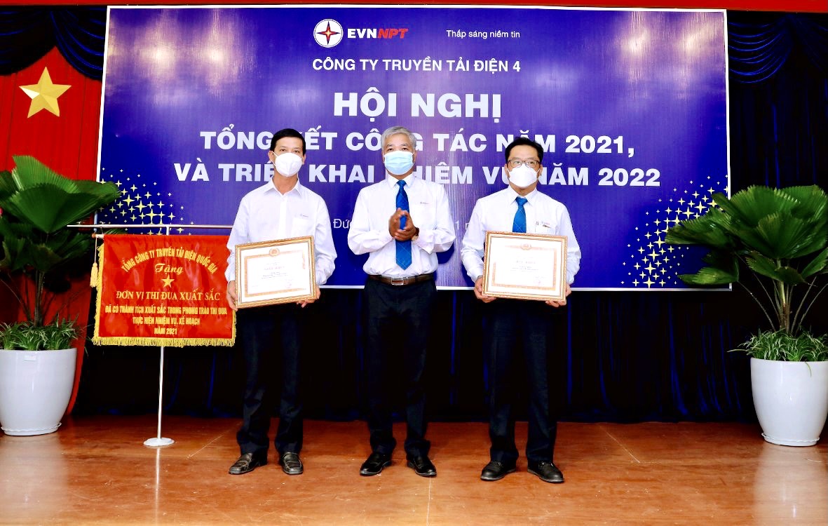 Nhân dịp này Công ty Truyền tải điện 4 đã tổ chức trao các danh hiệu Chiến sỹ thi đua UVBQLV; Cờ thi đua Tập đoàn Điện Lực Việt Nam; Tổng Công ty Truyền tải điện Quốc gia; các giấy khen của Công ty Truyền tải điện 4 cho các tập thể và cá nhân đạt thành tích xuất sắc trong công tác đảng và sản xuất năm 2021. /.