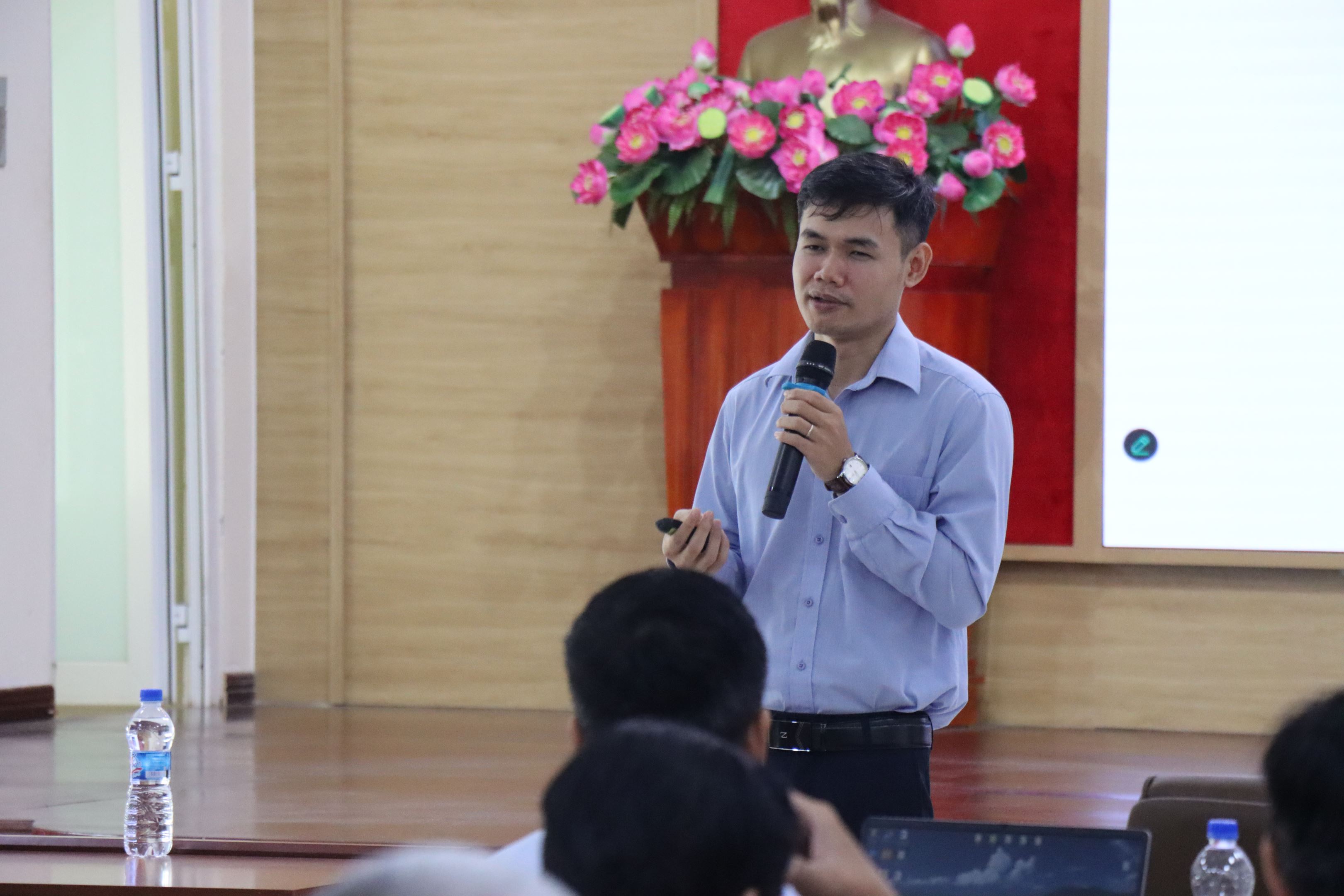 Ảnh Giảng viên Lê Xuân Hiếu của Trung tâm Vnpro trình bày bài giảng tại buổi học.