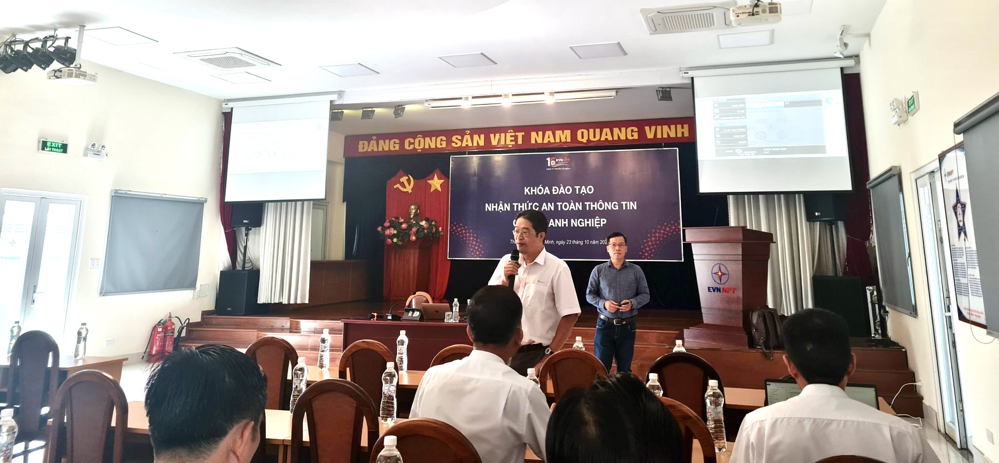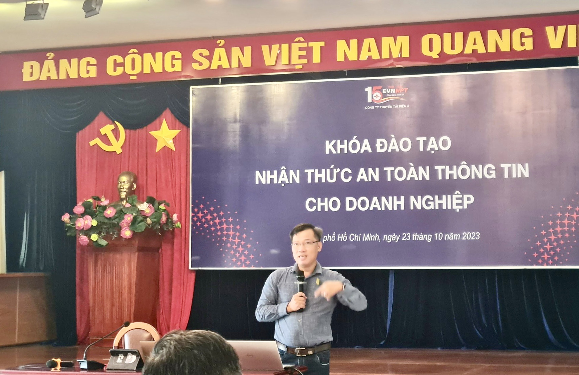 Sáng ngày 23 tháng 10 năm 2023, Phòng Viễn thông công nghệ thông tin thuộc Công ty Truyền tải điện 4 đã chủ trì tổ chức khóa đào tạo nhận thức về an toàn thông tin cho lãnh đạo và cán bộ công nhân viên chức Công ty, vừa học trực tiếp vừa qua hình thức trực tuyến (zoom metting). Giảng viên khóa đào tạo là Tiến sỹ Nguyễn Lê Duy Lai, công tác tại Khoa khoa học và kỹ thuật máy tính Trường Đại học Bách Khoa Thành phố Hồ Chí Minh.