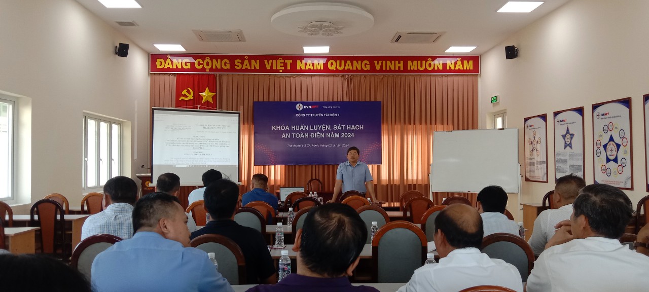 Theo đó, kể từ ngày 27/02/2024 đến nay, PTC4 đã tổ chức được 02 lớp huấn luyện, sát hạch An toàn điện định kỳ năm 2024, và cũng trong kế hoạch này, PTC4 còn tổ chức 01 lớp nữa vào trung tuần tháng 3/2024. Nội dung của khoá huấn luyện gồm Biện pháp kỹ thuật chuẩn bị nơi làm việc an toàn khi phối hợp nhiều đơn vị công tác tại hiện trường; Đánh giá rủi ro về tai nạn trong phạm vi công việc được giao; Cách nhận biết và biện pháp loại trừ nguy cơ gây sự cố, tai nạn tại nơi làm việc và phương pháp tách nạn nhân ra khỏi nguồn điện, sơ cứu người bị tai nạn điện. Quy định chi tiết một số nội dung về an toàn điện; Quy trình an toàn thủy, cơ, nhiệt, hóa trong Tập đoàn Điện lực Quốc gia Việt Nam ban hành kèm theo Quyết định số số 881/QĐ-EVN ngày 15/7/2021; Quy trình An toàn điện trong Tập đoàn Điện lực Quốc gia Việt Nam” ban hành theo Quyết định số 959/QĐ-EVN ngày 26/7/2021; Quy định về công tác an toàn trong Tập đoàn Điện lực Quốc gia Việt Nam” ban hành theo Quyết định số 1221/QĐ-EVN ngày 09/09/2021.
