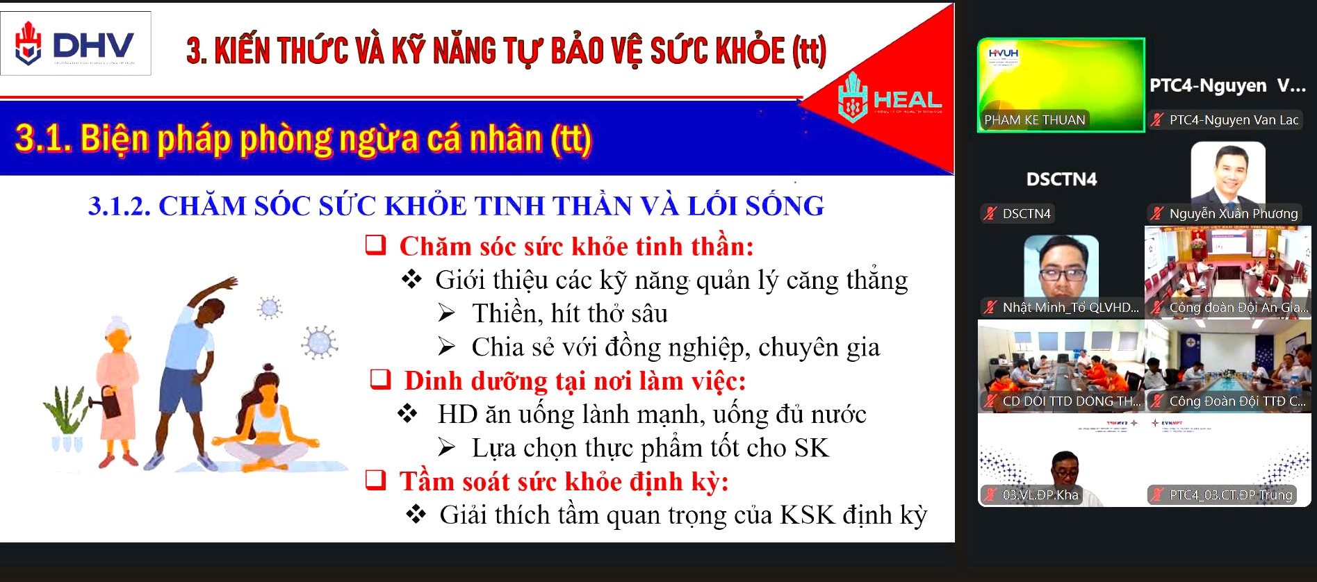 Các cán bộ công đoàn tham dự lớp Bồi huấn nhận thức tự bảo vệ sức khỏe cho CNVCLĐ qua Zoom từ xa