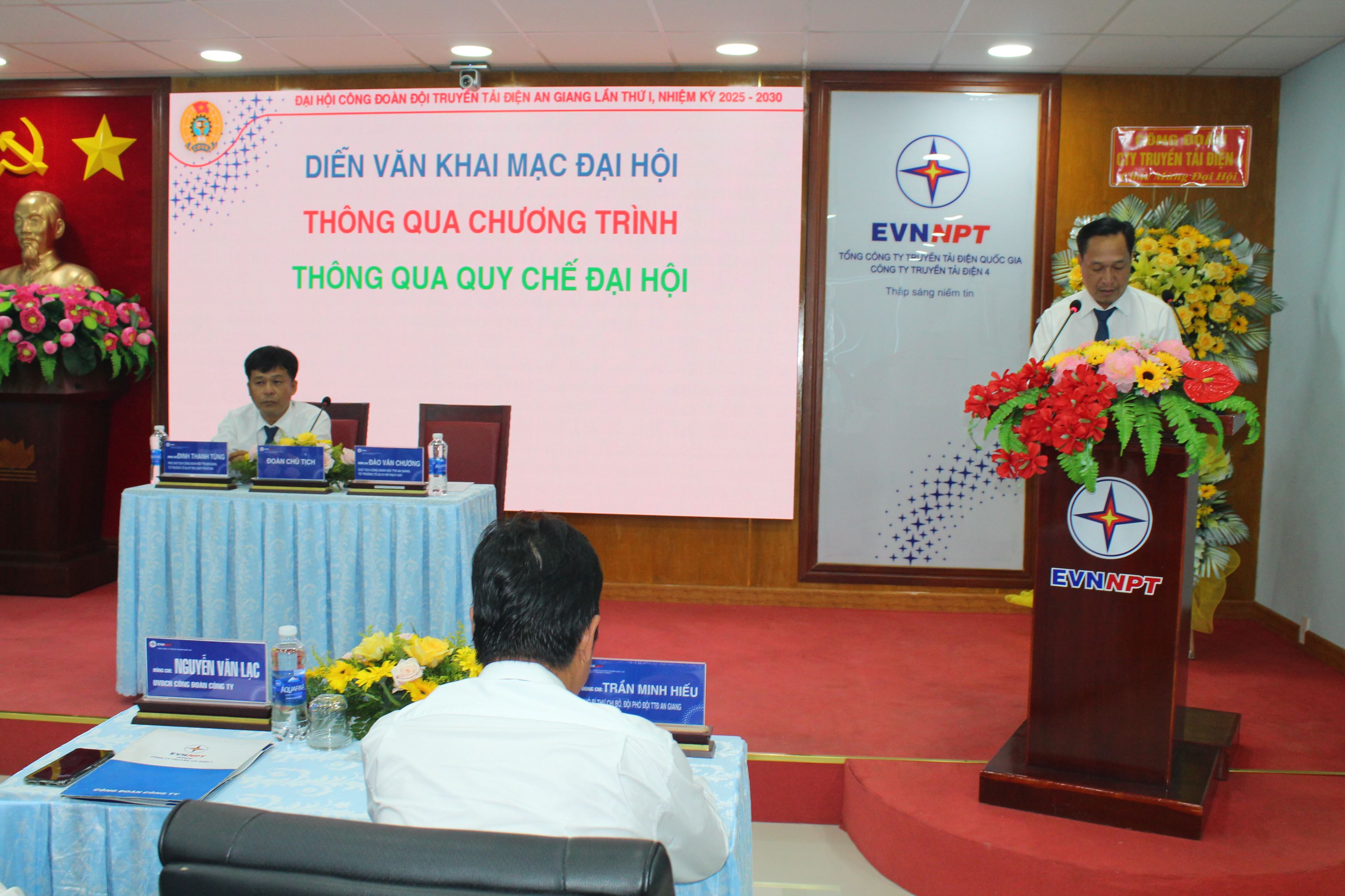 Đại hội vinh dự được đón tiếp và nhận sự chỉ đạo của đồng chí Nguyễn Phương Nam – Chủ tịch Công đoàn Công ty Truyền tải điện 4; cùng đồng chí Trần Quốc Hiệu – Bí thư Chi bộ, Đội trưởng Đội Truyền tải điện An Giang. Tham dự Đại hội có đồng chí Nguyễn Văn Lạc – UVBCH Công đoàn Công ty Truyền tải điện 4, các đồng chí trong cấp ủy Đội Truyền tải điện An Giang, đặc biệt có 48 đại biểu chính thức tham dự đại diện cho toàn thể đoàn viên công đoàn của Đội.