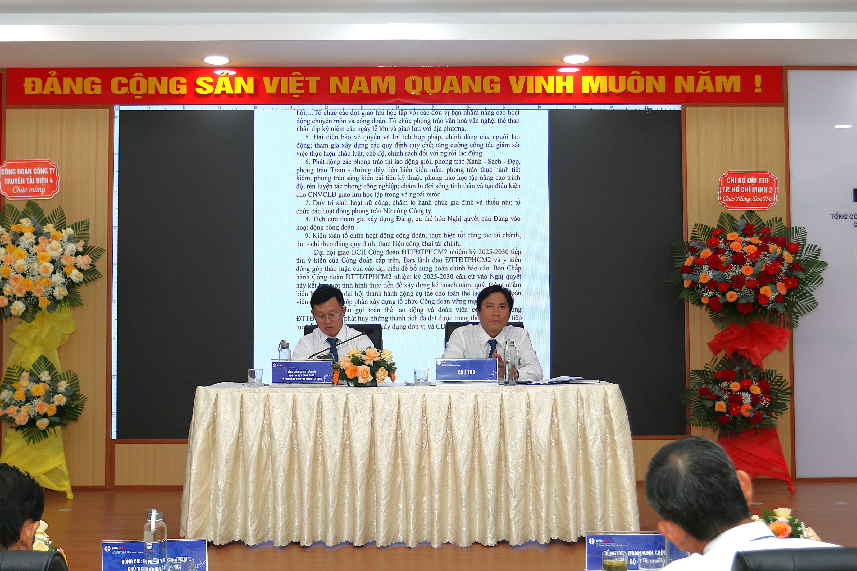 Đoàn Chủ tịch điều hành Đại hội Công đoàn Đội Truyền tải điện Thành phố Hồ Chí Minh 2.