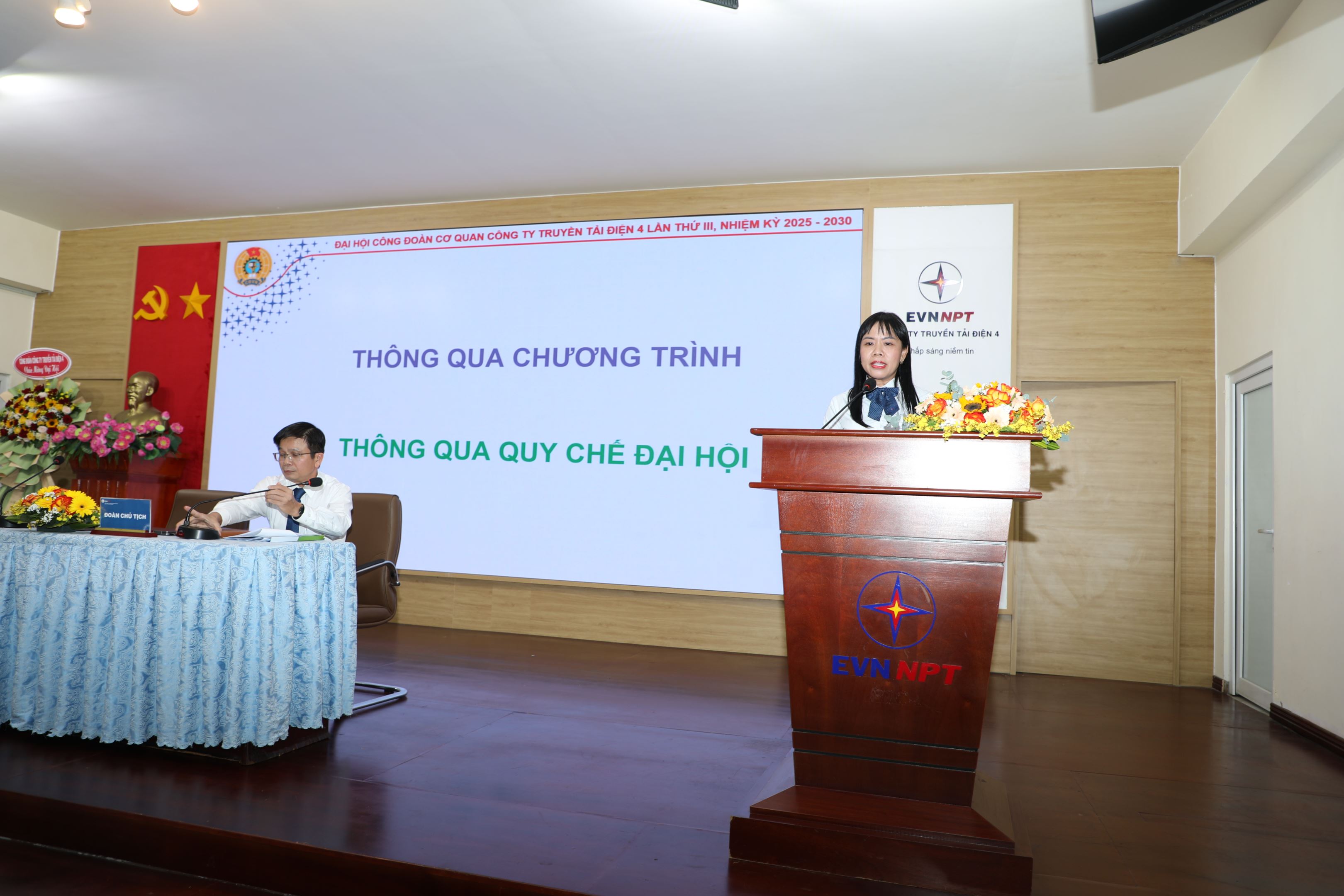 Sau một buổi làm việc nghiêm túc, hiệu quả, Đại hội đã thống nhất với các nội dung trong báo cáo tổng kết nhiệm kỳ, tiếp thu nhiều ý kiến tham luận của đại biểu và ý kiến chỉ đạo sâu sát của Chủ tịch Công đoàn Công ty Truyền tải điện 4. Từ đó, Đại hội đã rút ra những bài học kinh nghiệm quý báu, làm hành trang cho việc đề ra mục tiêu, phương hướng nhiệm vụ trong nhiệm kỳ mới.