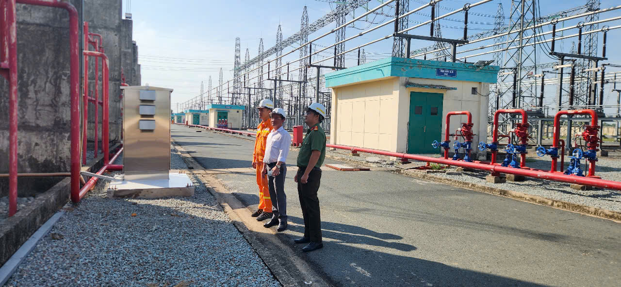 Đoàn kiểm tra công tác bảo vệ, việc xây dựng phương án bảo đảm cung cấp điện, lịch trực Lãnh đạo trong các ngày nghỉ Lễ 30/4 và Quốc tế lao động 01/5/2025 tại các Trạm 500kV Tân Uyên, 500kV Tân Định. Các Trạm đã thực hiện tốt việc chuẩn bị sẵn sàng cho công tác bảo vệ tài sản, bảo vệ hành lang an toàn, đảm bảo an ninh trật tự trạm điện dịp Lễ 30/4 và Quốc tế lao động 01/5/2025, bao gồm đảm bảo công tác phòng chống cháy tại các trạm biến áp.