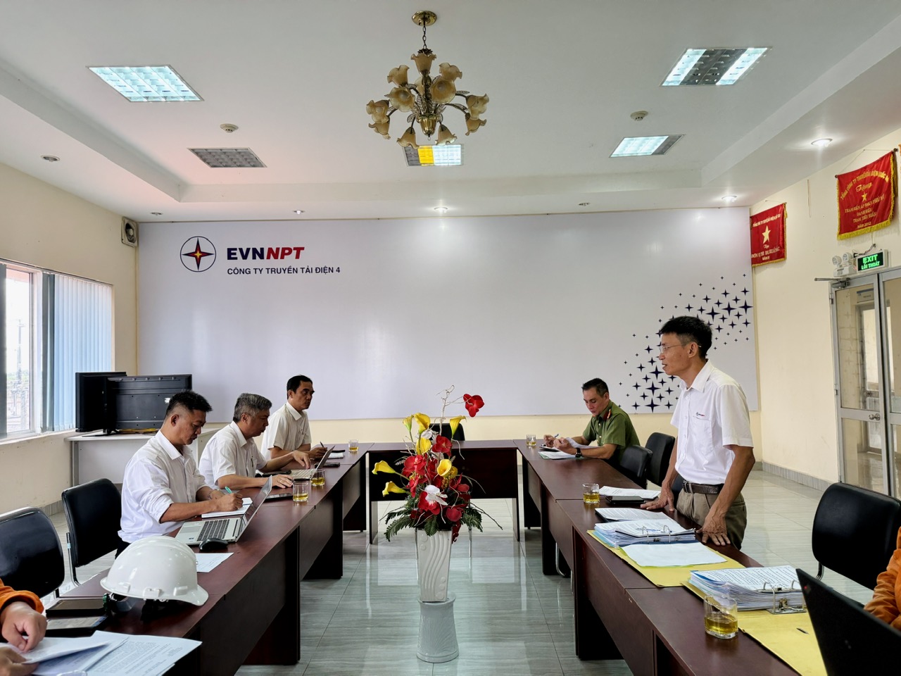 Đoàn công tác làm việc tại phòng họp Tổ QLVH Trạm 500kV Phú Mỹ.