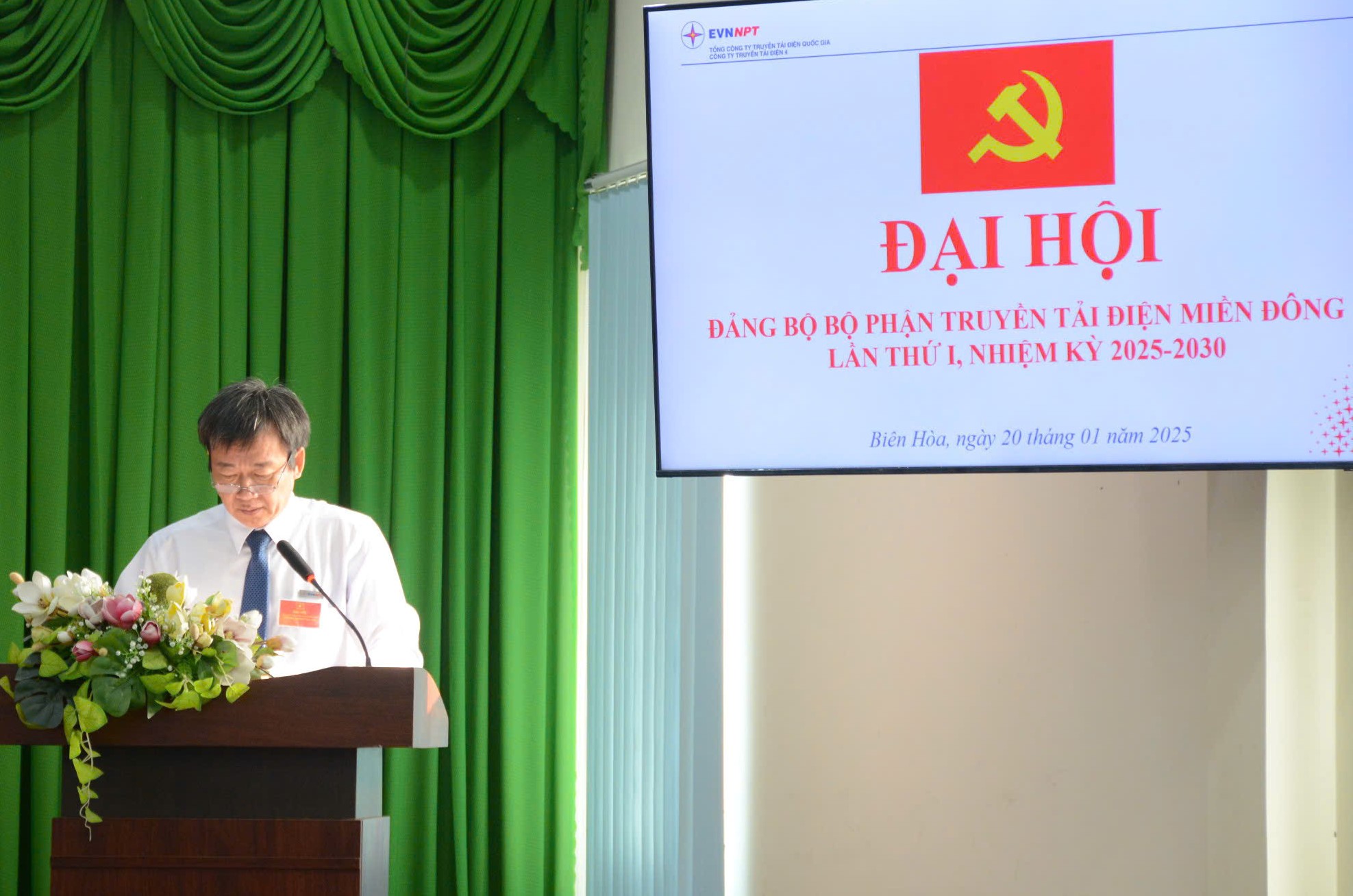 Sáng ngày 20/01/2025 Đảng bộ bộ phận Truyền tải điện Miền Đông 1 đã tổ chức thành công Đại hội lần thứ I, nhiệm kỳ 2025 – 2030. Tham dự và chỉ đạo Đại hội có đồng chí Nguyễn Văn Bảy – UVTV Đảng ủy, Phó Giám đốc Công ty Truyền tải điện điện 4; về phía đảng bộ bộ phận Truyền tải điện Miền Đông 1(TTĐMĐ1) có đồng chí Nguyễn Minh Dũng – Bí thư Đảng ủy, Giám đốc, các đồng chí UVBCH Đảng bộ bộ phận, Chủ tịch Công đoàn, Bí thư Chi đoàn và 61 đảng viên trong Đảng bộ.