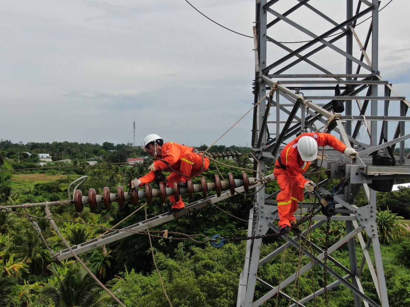 Công nhân quản lý vận hành đường dây kiểm tra định kỳ