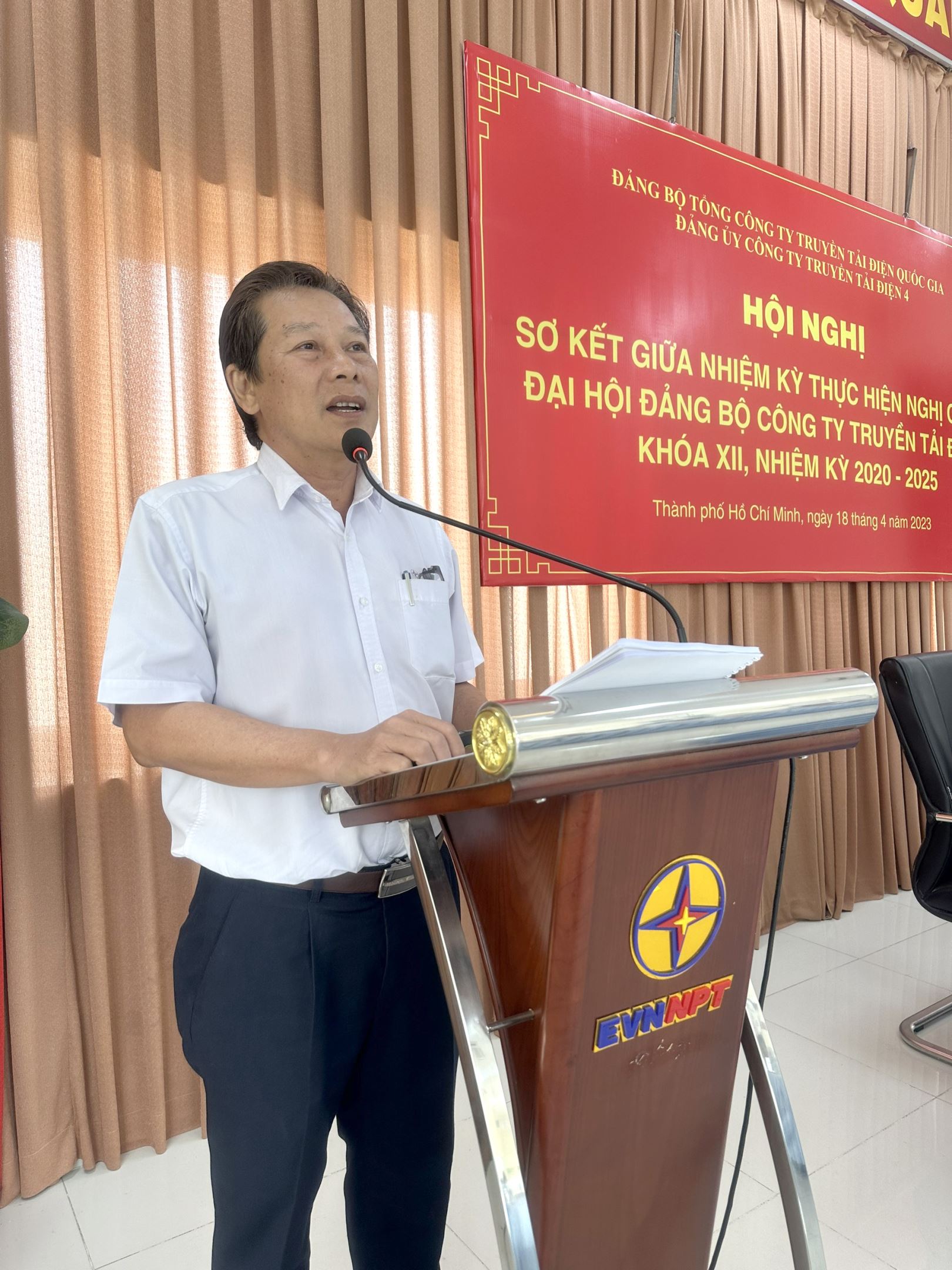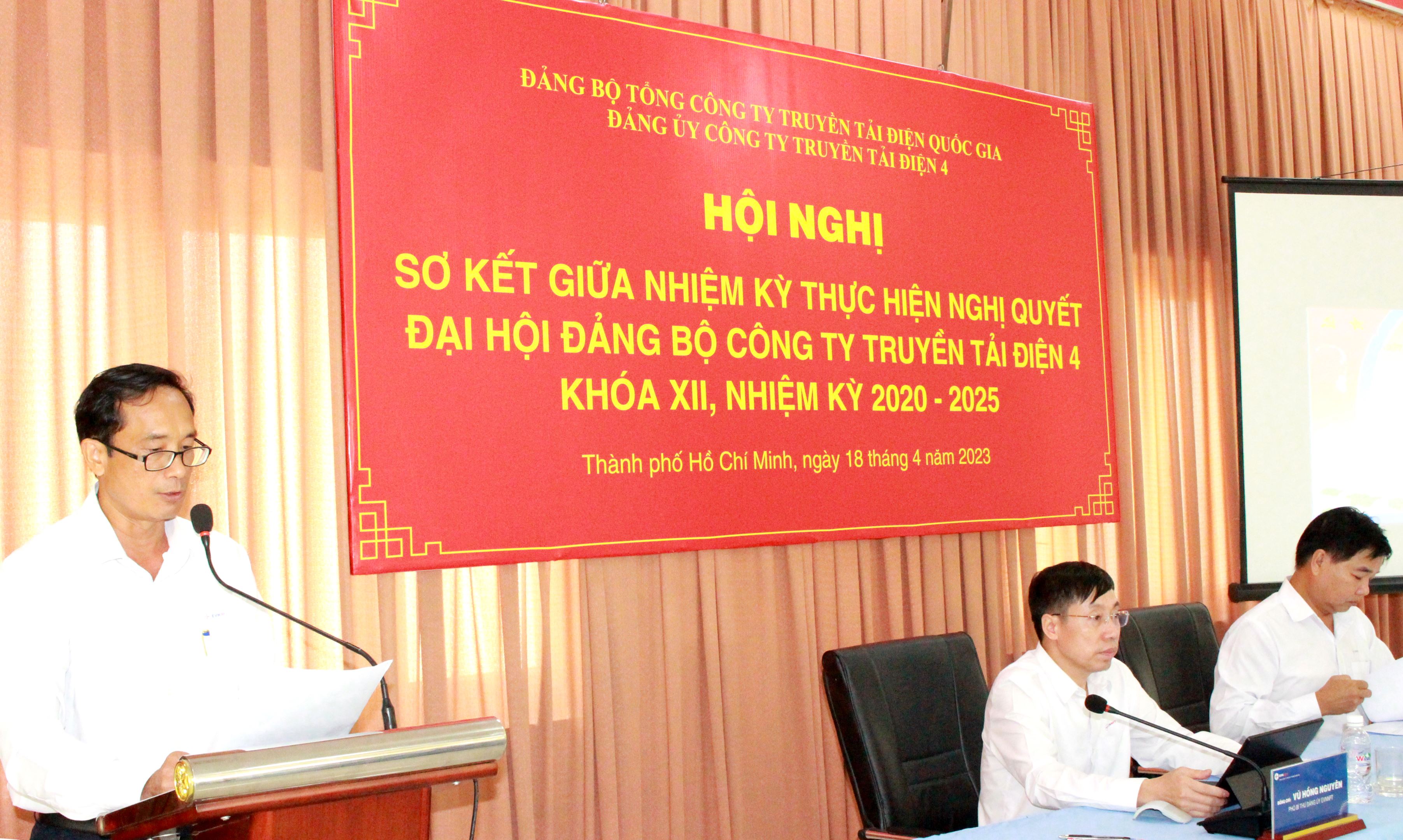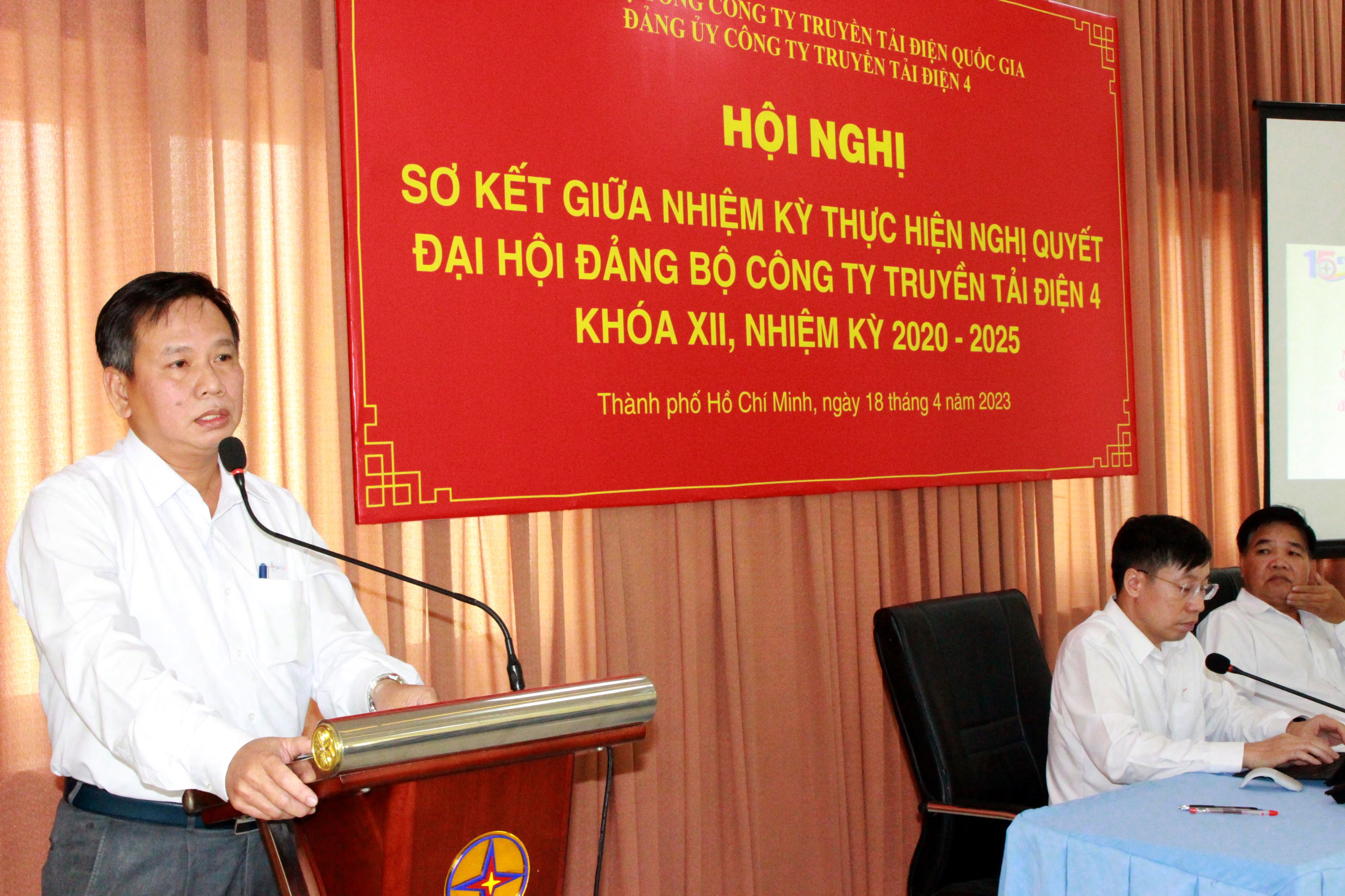 Thay mặt Ban chấp hành Đảng bộ Công ty, đồng chí Nguyễn Văn Hóa - Phó Bí thư Đảng ủy, Phó Giám đốc Công ty báo cáo kết quả thực hiện nhiệm vụ nửa nhiệm kỳ đầu của Đảng bộ Công ty Truyền tải điện 4, nhiệm kỳ 2020-2025.
