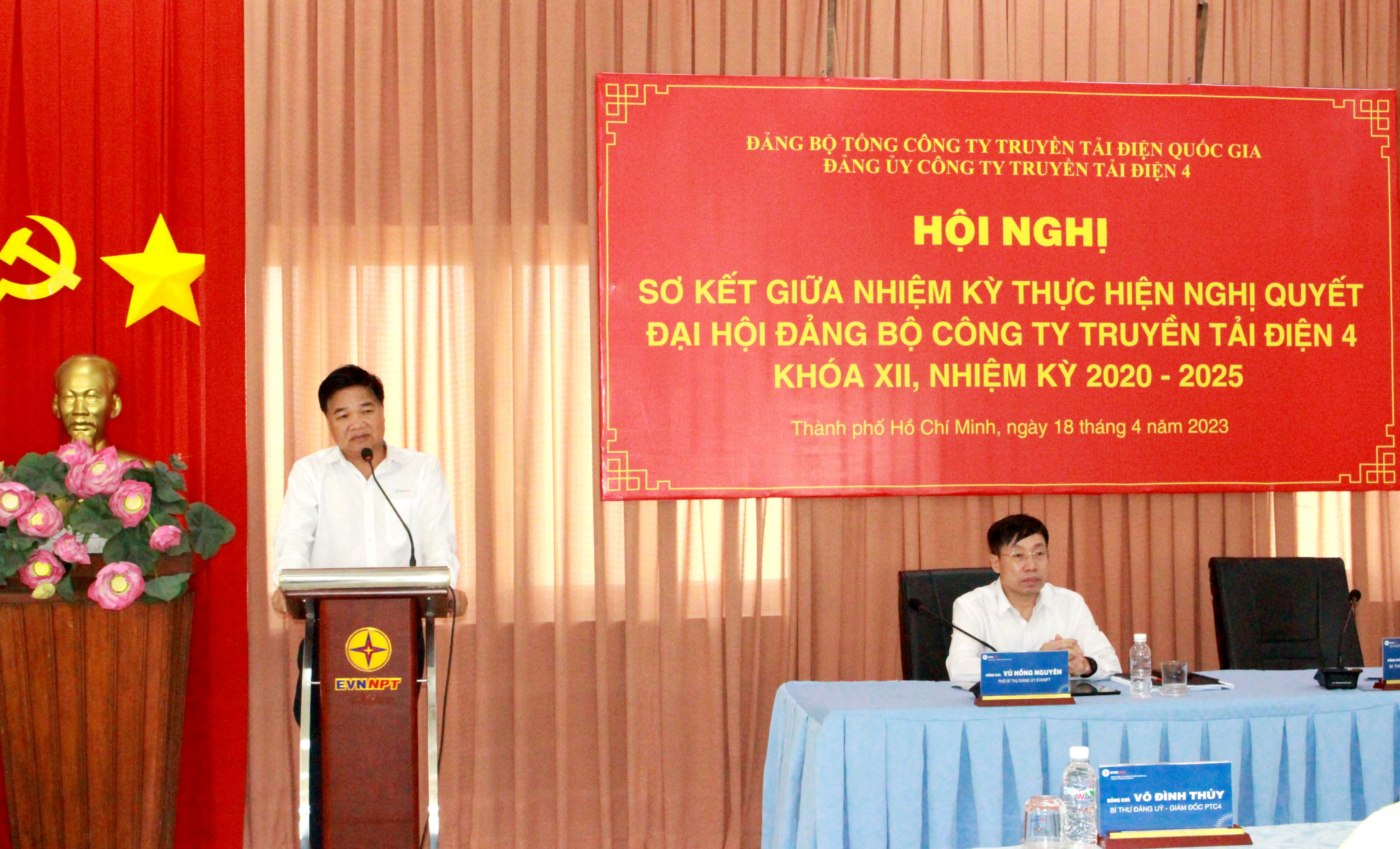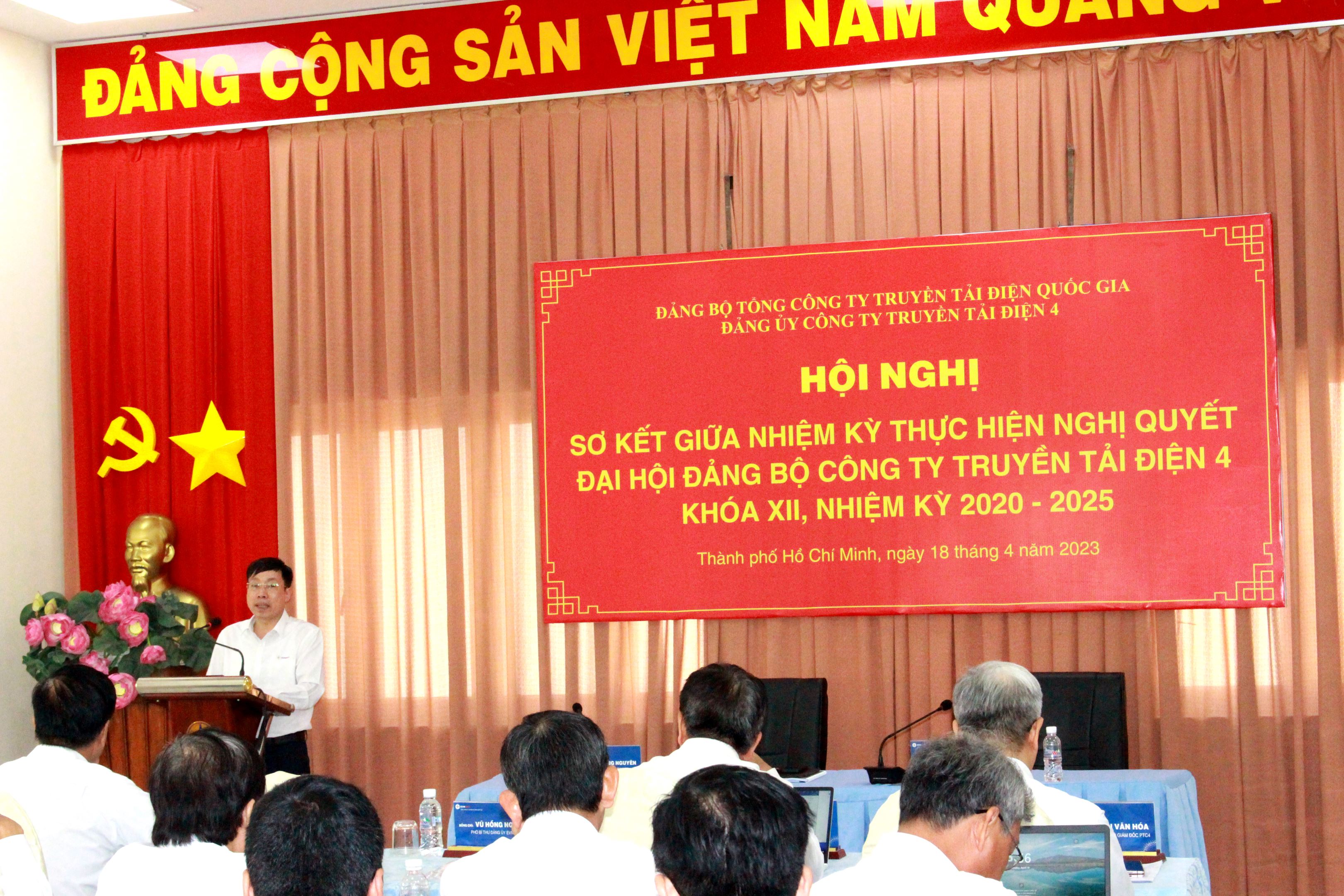 Phát biểu chỉ đạo Hội nghị,đồng chí Vũ Hồng Nguyên – Phó Bí thư Thường trực Đảng ủy Tổng công ty đã ghi nhận và biểu dương những kết quả đạt được trong nửa nhiệm kỳ qua. Mặc dù trong điều kiện còn nhiều khó khăn, đặc biệt do dịch bệnh Covid-19 đầu nhiệm kỳ nhưng Đảng uỷ PTC4 đã khắc phục khó khăn và đã đạt được nhiều thành tích đáng ghi nhận. Đồng chí biểu dương sự chuyên nghiệp, tuân thủ, trách nhiệm, tận tâm của cán bộ công nhân viên Công ty Truyền tải điện 4 so với mặt bằng chung các đơn vị trong Tổng công ty. Nhận xét trong những mặt tồn tại, hạn chế của Đảng bộ Công ty Truyền tải điện 4 được nêu trong báo cáo sơ kết, đồng chí đánh giá cao sự nghiêm túc nhìn nhận những mặt hạn chế của Công ty. Bởi có nhận diện được các hạn chế tồn tại thì mới có giải pháp đúng, phù hợp để khắc phục trong thời gian tới để hoàn thành các mục tiêu, nhiệm vụ mà Nghị quyết Đại hội đã đề ra.