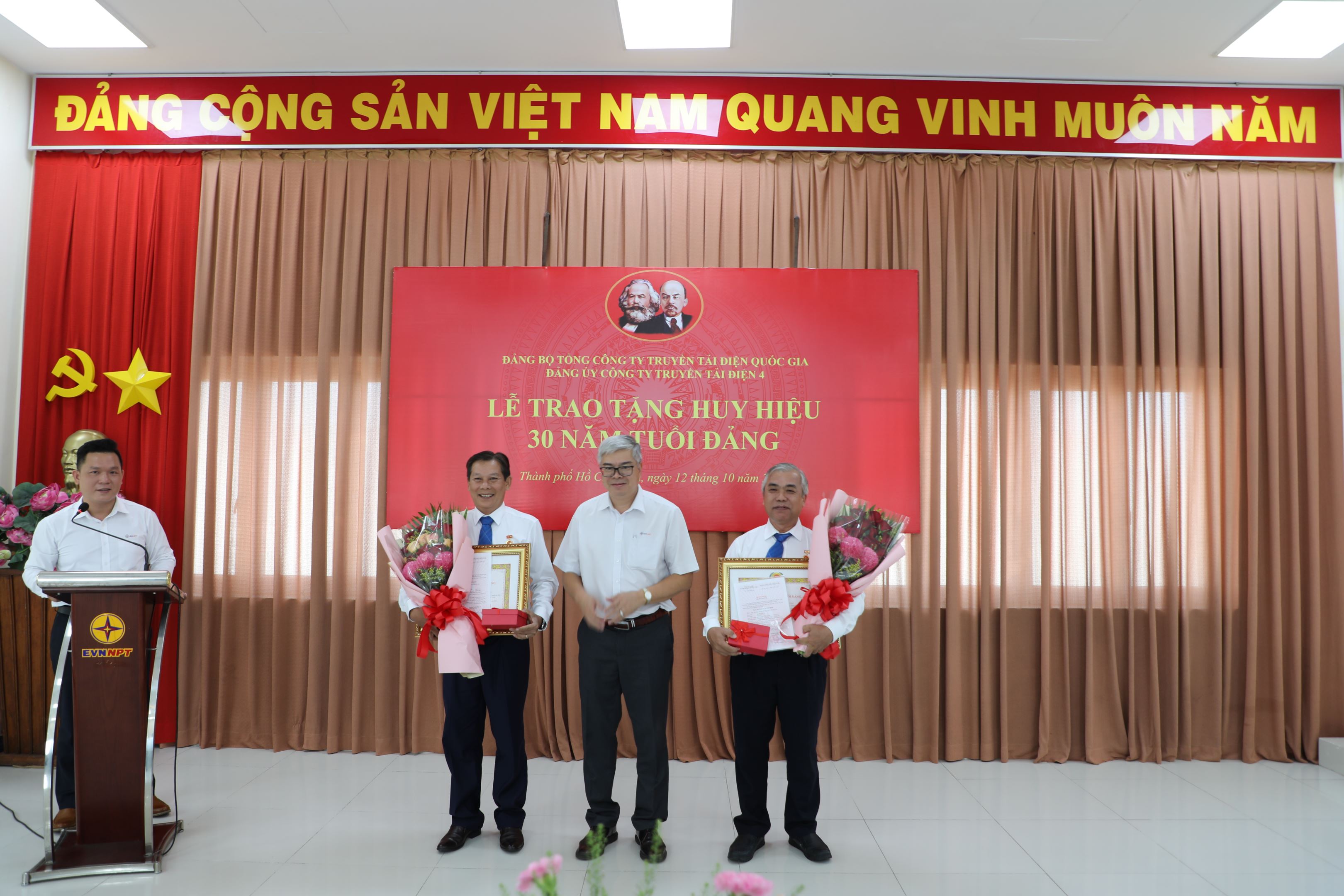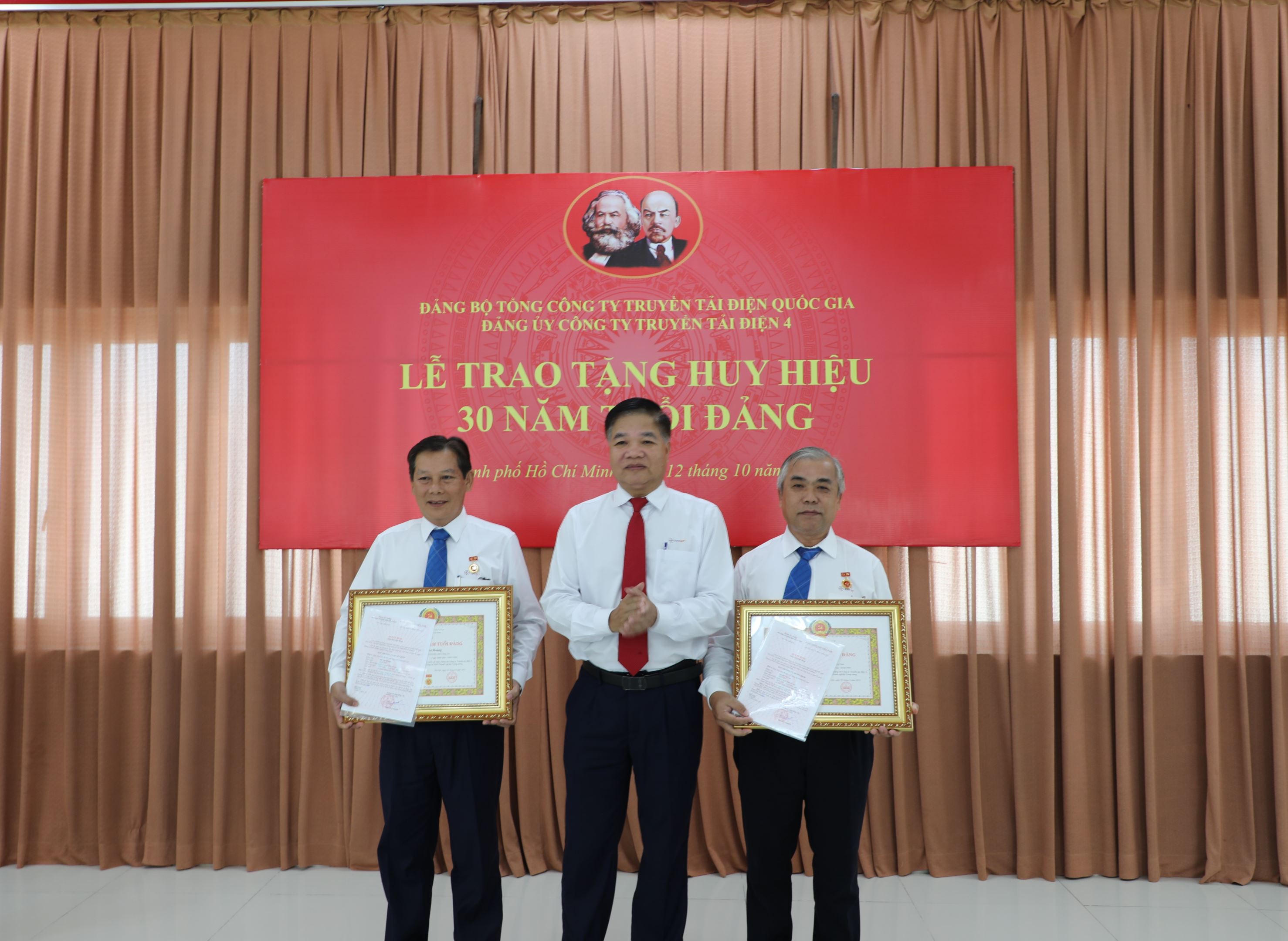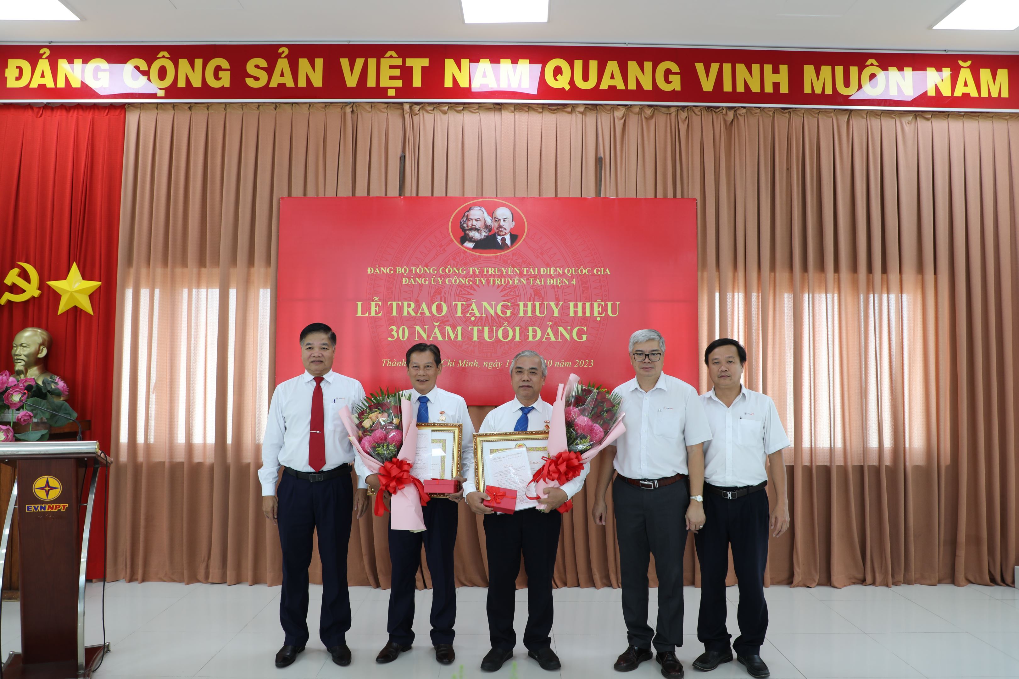 Lễ trao tặng Huy hiệu 30 năm tuổi Đảng của Đảng ủy Công ty Truyền tải điện 4 vinh dự có sự hiện diện của đồng chí Võ Đình Thủy – Bí thư Đảng ủy, Giám đốc Công ty cùng các tập thể Ban Chấp hành Đảng bộ Công ty, các đồng chí đảng viên Chi bộ Cơ quan Truyền tải điện thuộc Đảng bộ bộ phận Truyền tải điện Miền Đông 2, các đồng chí đảng viên Chi bộ An toàn và Công đoàn và đặc biệt là 02 đồng chí đón nhận huy hiệu 30 năm tuổi Đảng.