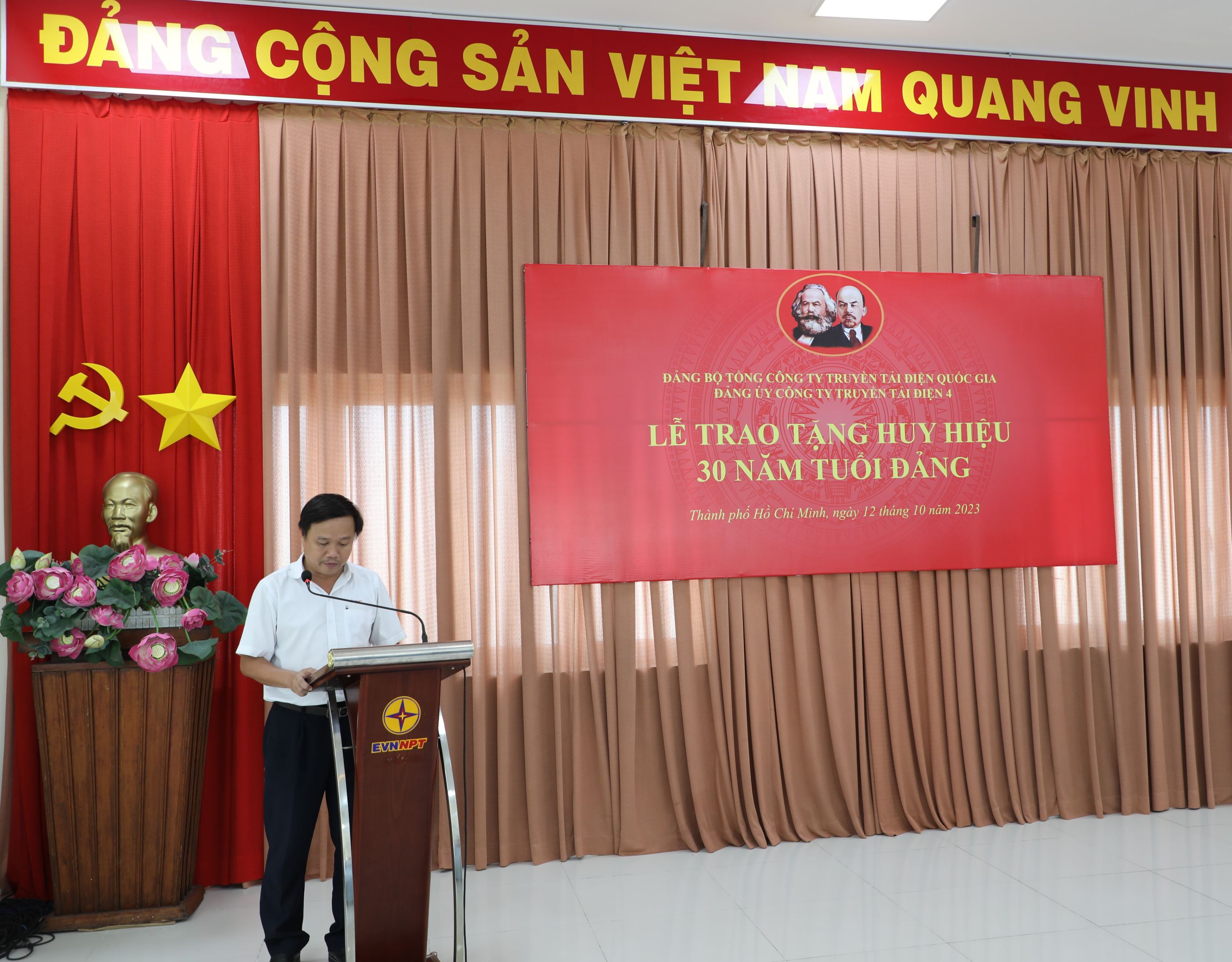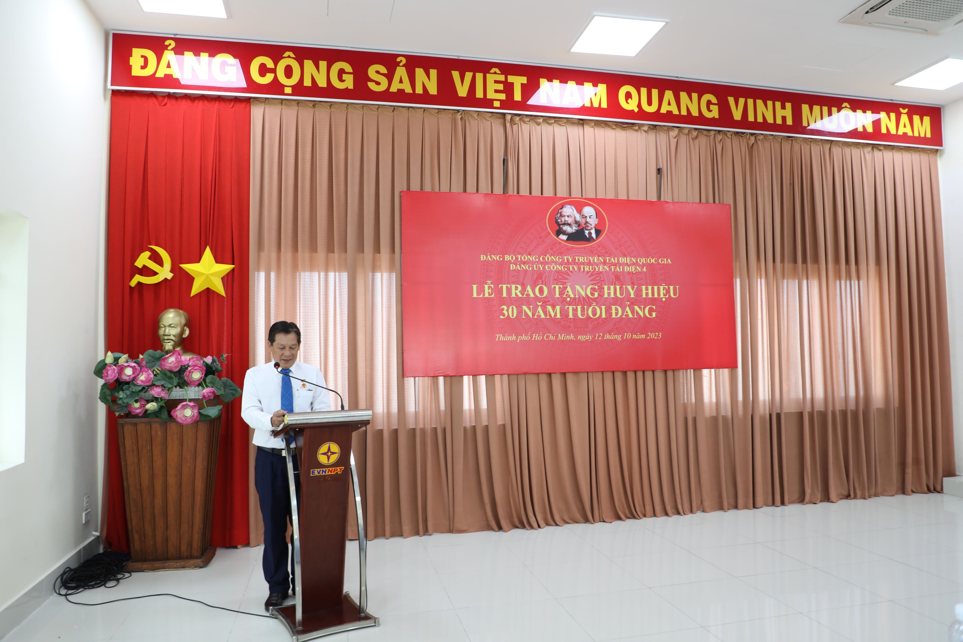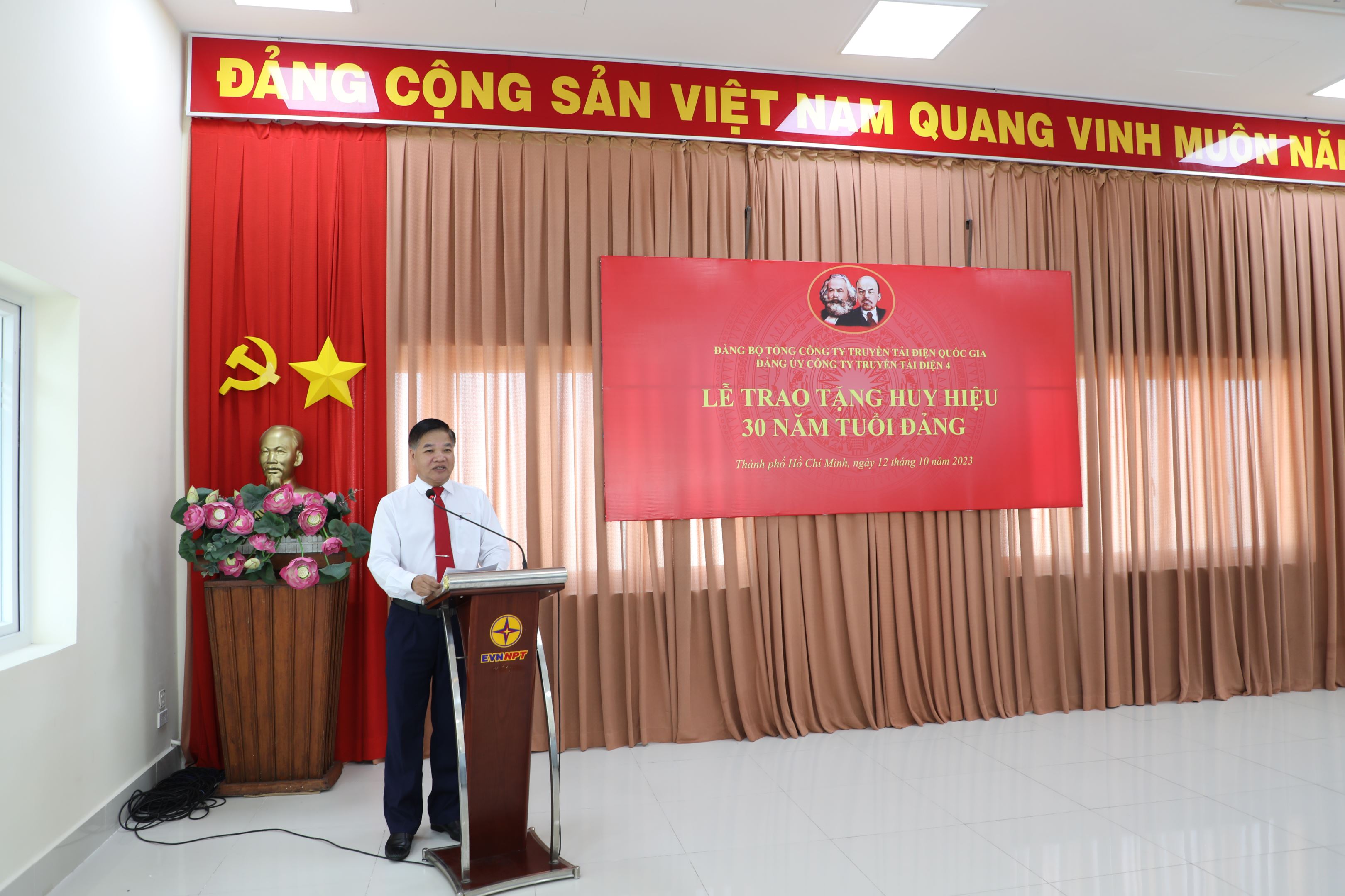 Lễ trao tặng Huy hiệu 30 năm tuổi Đảng của Đảng ủy Công ty Truyền tải điện 4 vinh dự có sự hiện diện của đồng chí Võ Đình Thủy – Bí thư Đảng ủy, Giám đốc Công ty cùng các tập thể Ban Chấp hành Đảng bộ Công ty, các đồng chí đảng viên Chi bộ Cơ quan Truyền tải điện thuộc Đảng bộ bộ phận Truyền tải điện Miền Đông 2, các đồng chí đảng viên Chi bộ An toàn và Công đoàn và đặc biệt là 02 đồng chí đón nhận huy hiệu 30 năm tuổi Đảng.