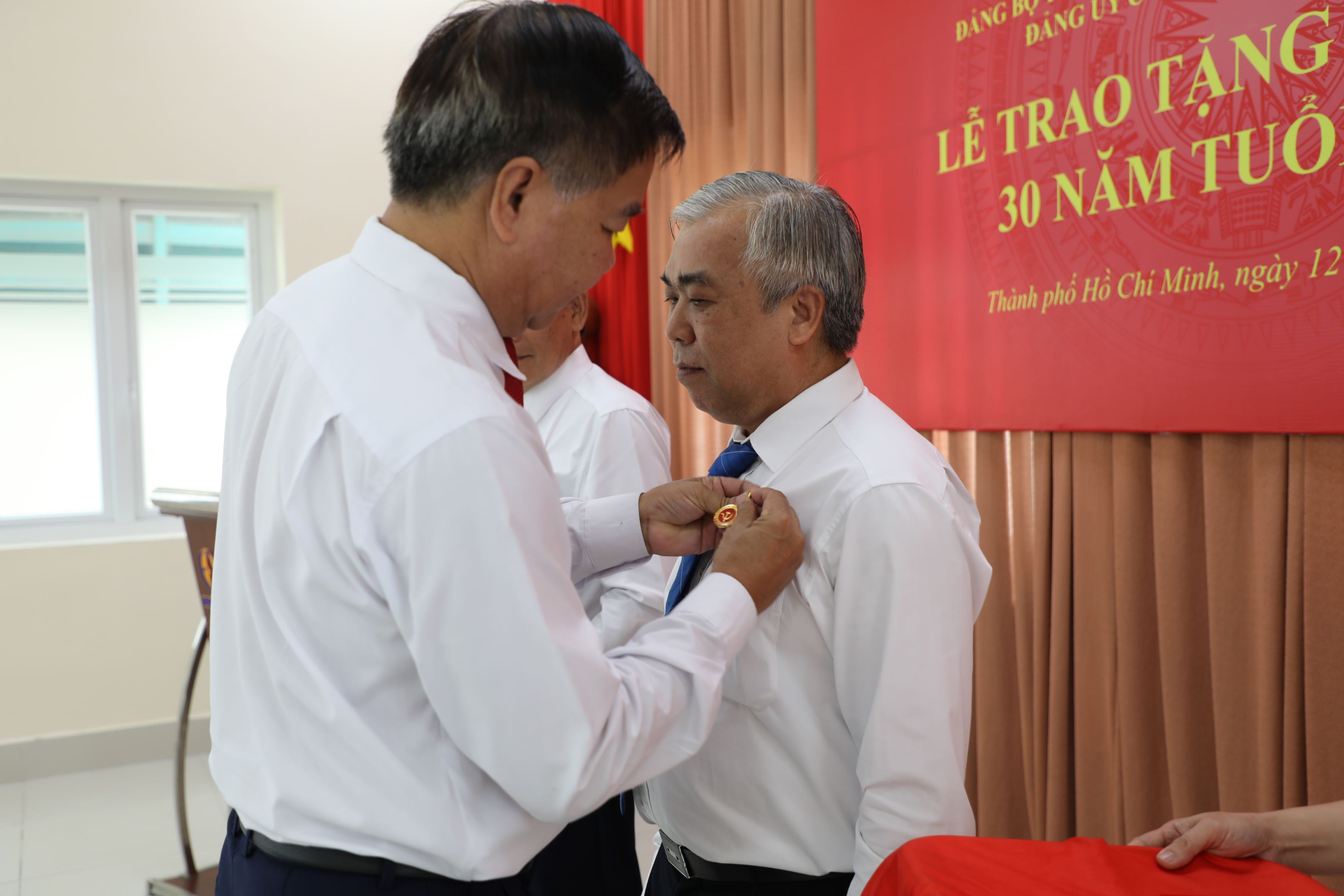 Thay mặt Đảng ủy Công ty, Đồng chí Võ Đình Thủy - Bí thư Đảng ủy, Giám đốc Công ty đã trao Quyết định tặng Huy hiệu 30 năm tuổi đảng cho 2 đồng chí và cài lên ngực áo của 02 đồng chí chiếc huy hiệu đỏ thắm lên ánh lên niềm tự hào, minh chứng cho sự nghiệp một lòng sắt son với Đảng của các đồng chí; đồng chí Nguyễn Văn Hóa, Phó Bí thư – Phó Giám đốc Công ty đã trao tặng những đóa hoa tươi thắm chúc mừng 02 đồng chí được nhận Huy hiệu.