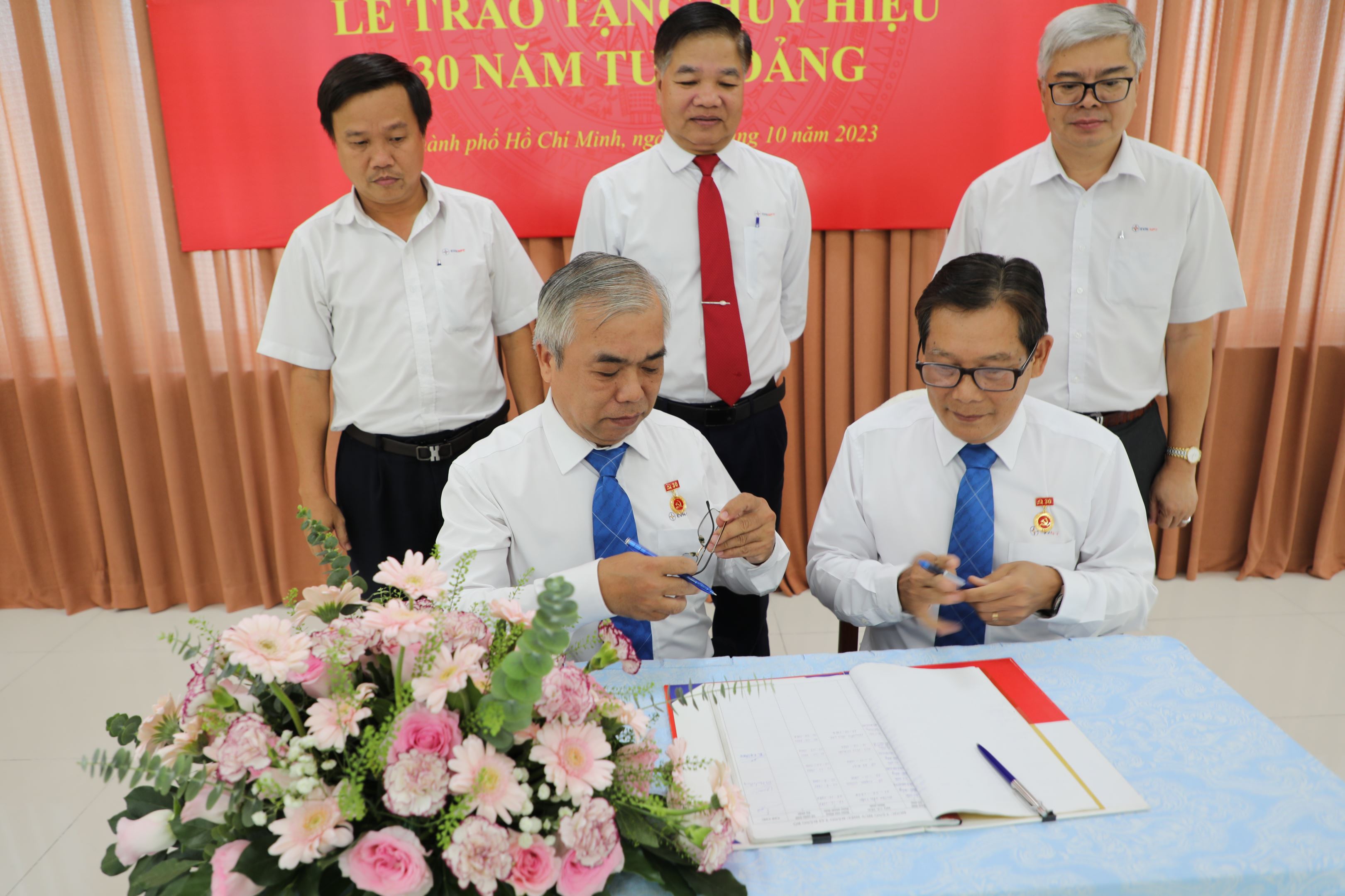 Các đảng viên nhận Huy hiệu Đảng ký tên vào sổ tặng Huy hiệu của Đảng bộ Công ty.