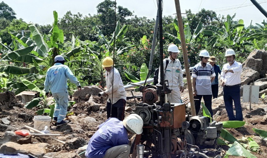 Đảng viên Tạ Hoàng Nam (người mặc áo trắng bên phải) tham gia chỉ đạo công trình cải tạo đường dây 220kV Bảo Lộc – Sông Mây.