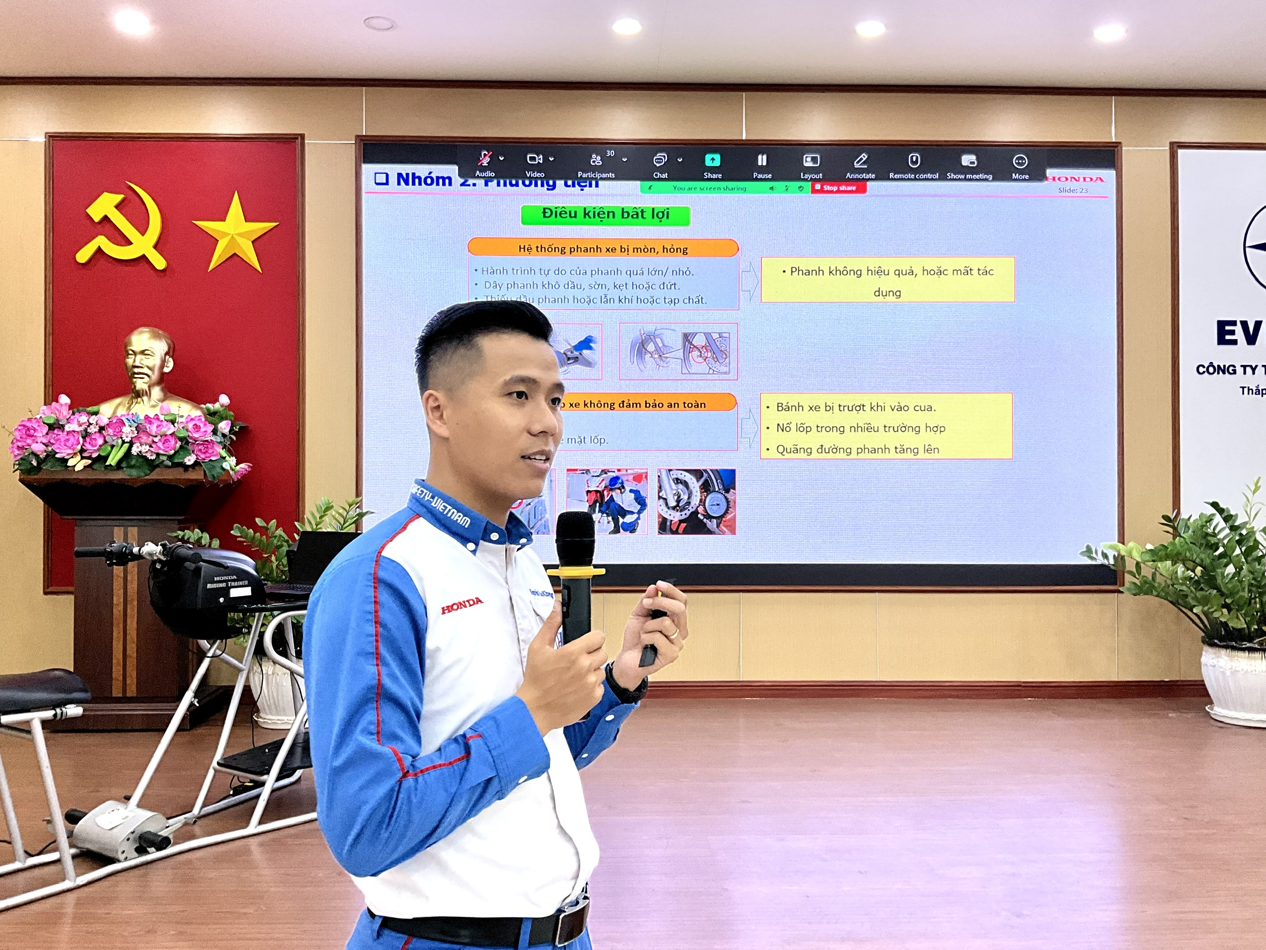 Chương trình được tổ chức với sự phối hợp của hai giảng viên Nguyễn Văn Khương và Nguyễn Đoàn Phú Quý đến từ Trung tâm đào tạo An toàn giao thông – Công ty Honda Việt Nam chi nhánh phía nam. Trong chương trình, giảng viên chuyên ngành an toàn giao thông đã hướng dẫn rất cụ thể các quy tắc lái xe an toàn, kỹ năng nhận biết, phòng tránh rủi ro và những lỗi cơ bản thường gặp trong quá trình tham gia giao thông.