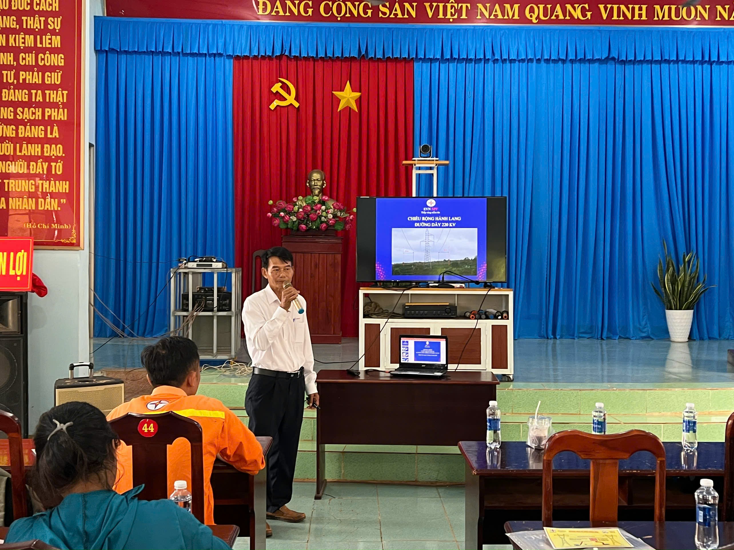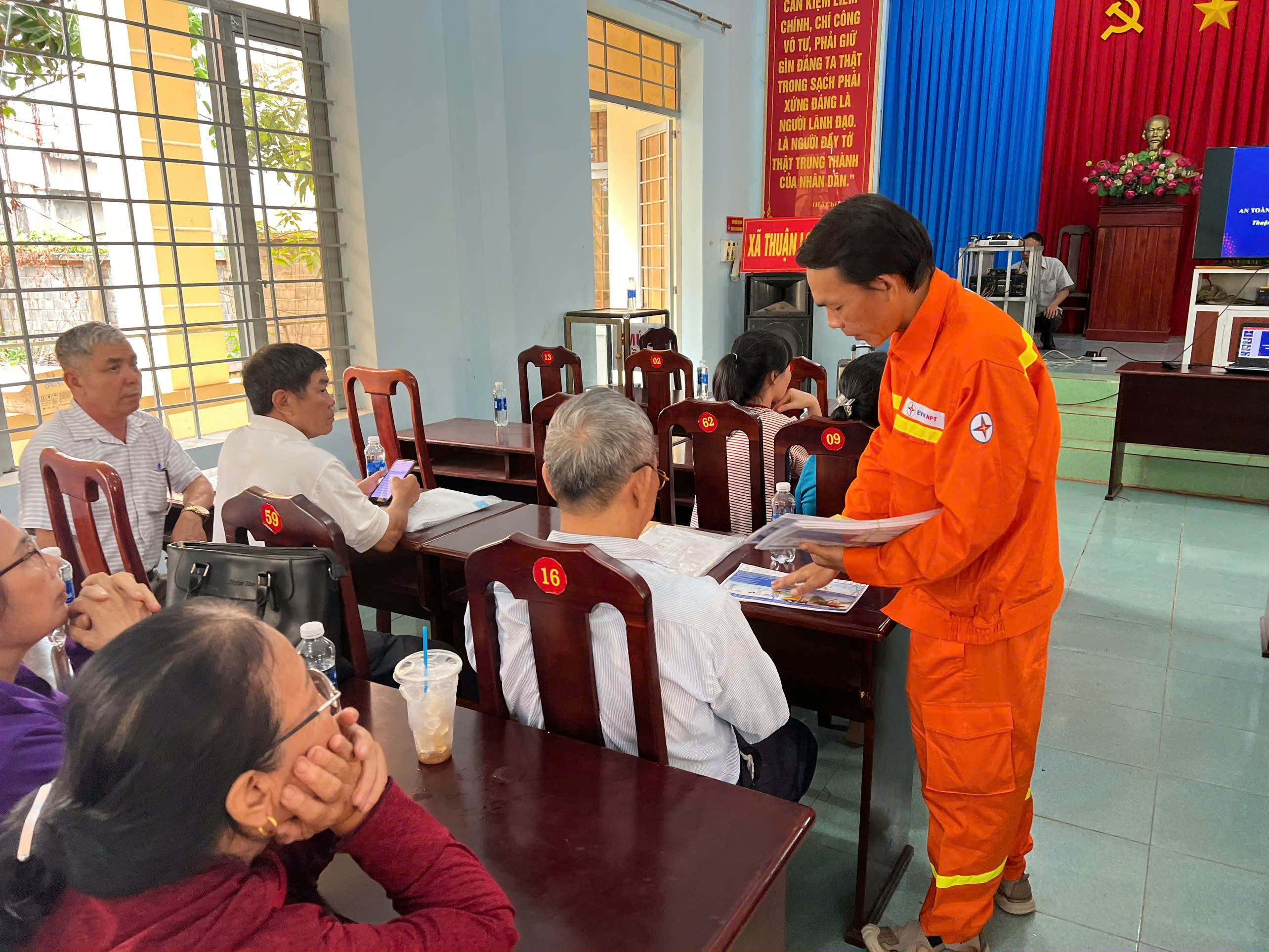 Ông Dương Đức Thành - cán bộ tuyên truyền đội Truyền tải điện Đồng Xoài tổ chức cho người dân trên địa bàn xã Thuận Lợi.