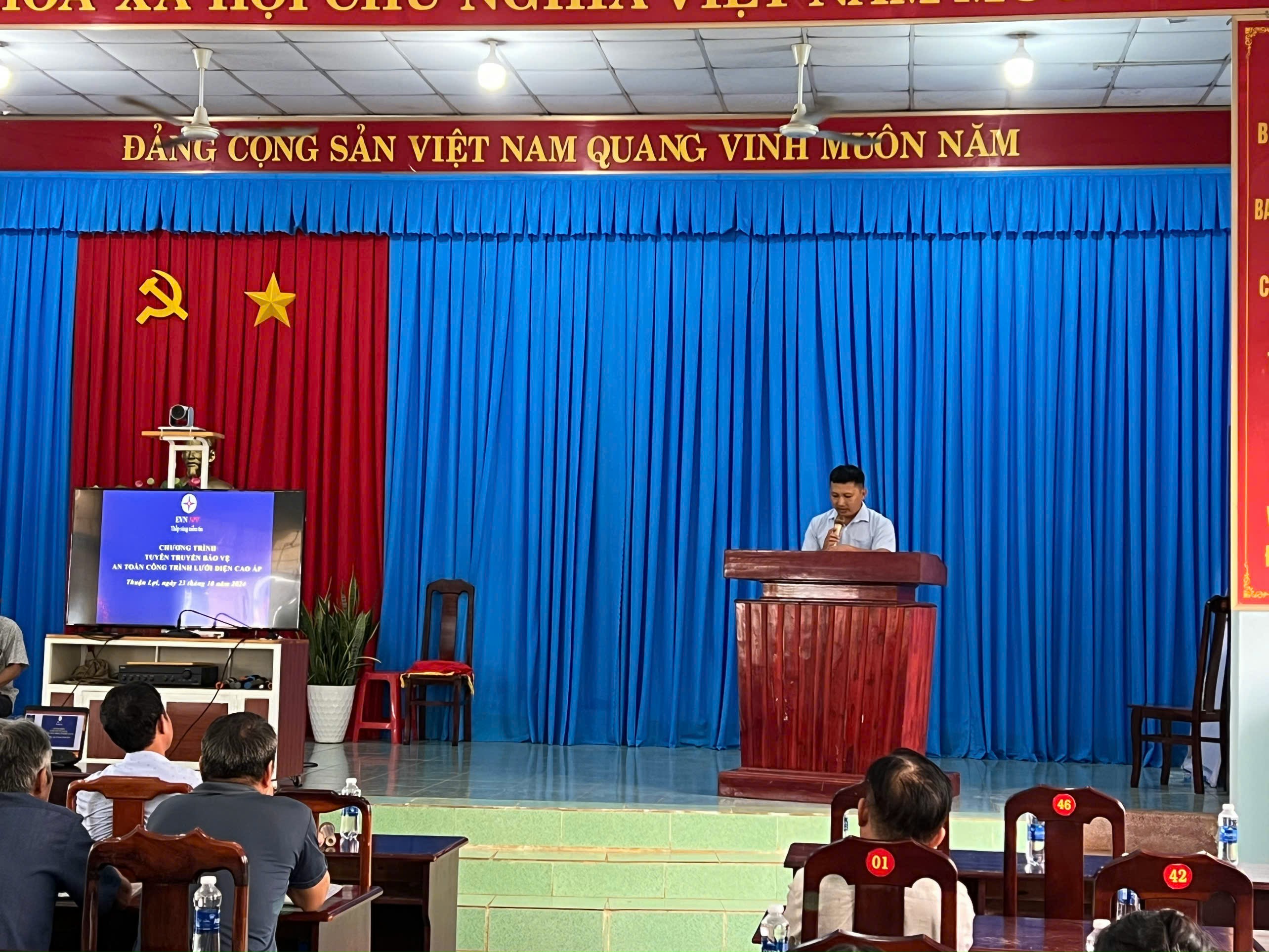Tham dự tại hội nghị có đại diện UBND xã Thuận Lợi đồng chí Ngô Thanh Tân – Phó chủ tịch UBND xã, Đại diện Đội Truyền tải điện Đồng Xoài có Ông Dương Đức Thành – cán bộ tuyên truyền cùng Trưởng các ấp và hơn 120 hộ dân tham dự.