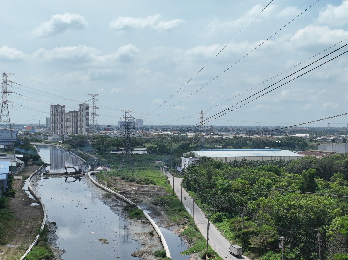 Ảnh: Công trình kênh Tham Lương – Bến Cát – rach nước lên đang thi công dọc theo đường dây 220kV Cầu Bông – Bình Tân