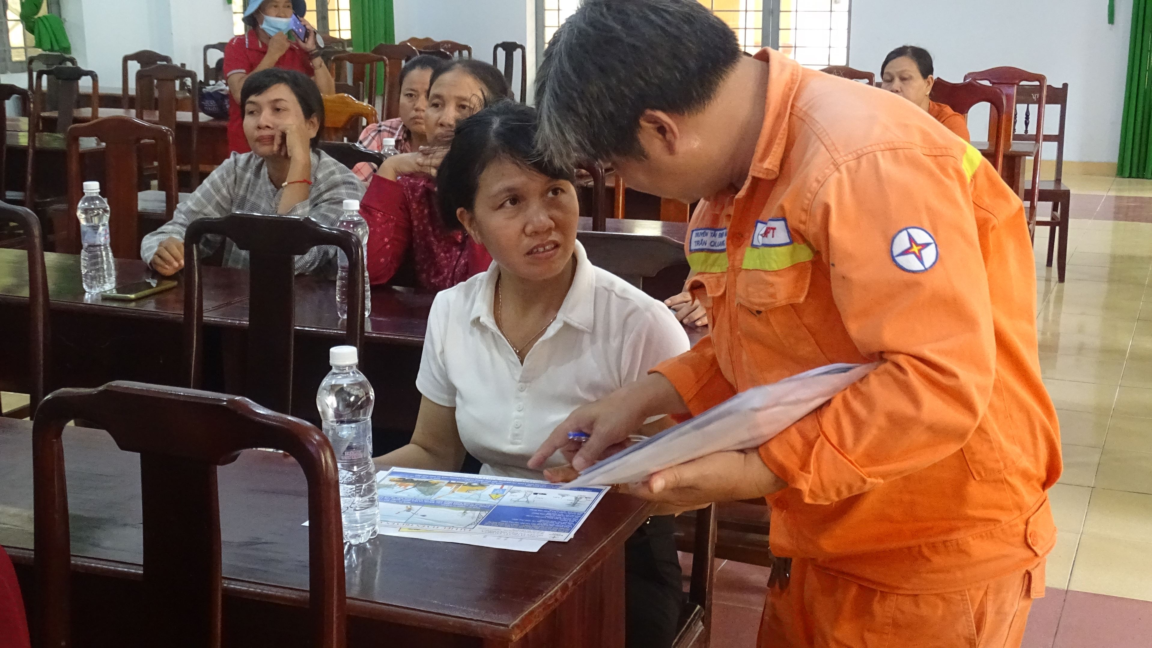 Ông Dương Đức Thành, cán bộ tuyên truyền Đội Truyền tải điện Đồng Xoài đang phổ biến các văn bản pháp luật về an toàn điện.