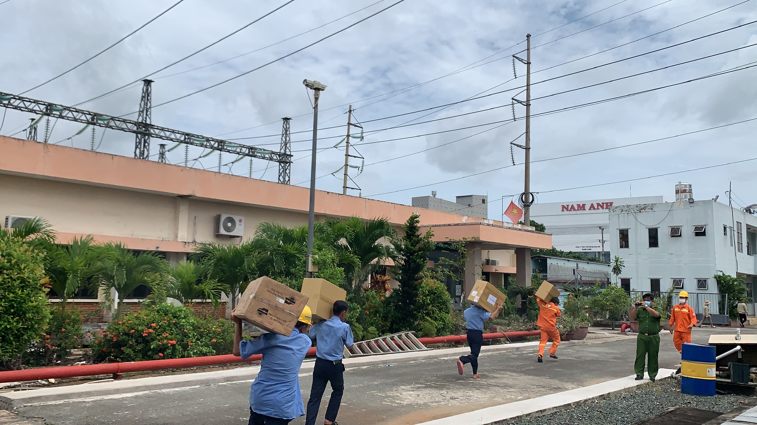 Nhân viên vận hành tại trạm và lực lượng bảo vệ phối hợp sơ tán người cùng đồ vật chống cháy lan.