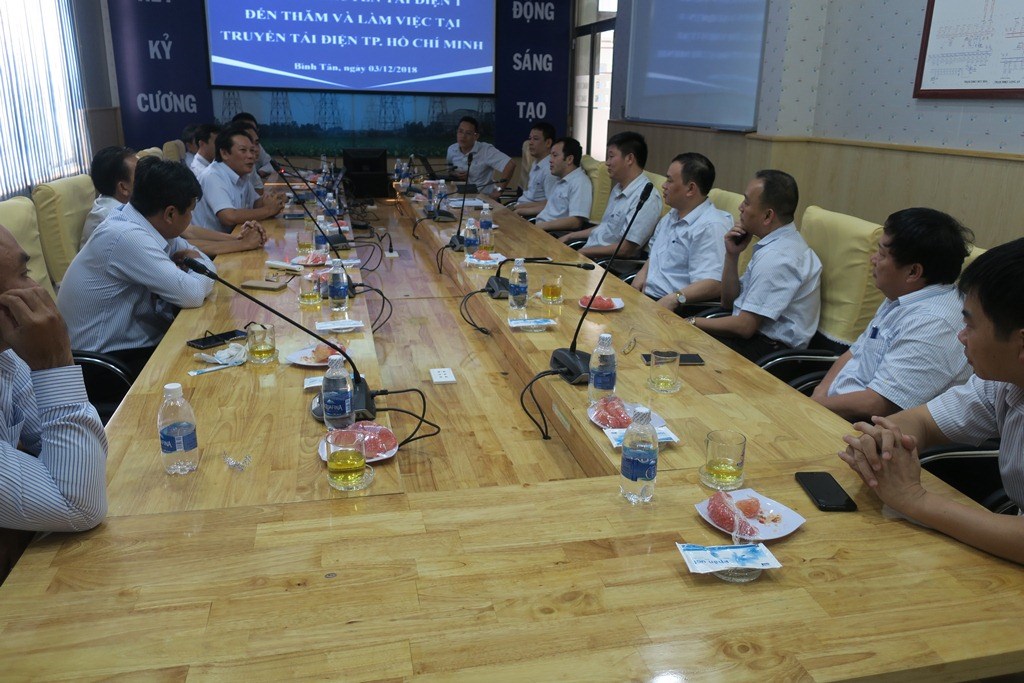 Tiếp và làm việc với Đoàn, về phía TTĐ.HCM có ông Bùi Văn Hoàng – Giám đốc, ông Trần Anh Dũng – Phó Giám đốc, ông Nguyễn Quang Thảo – Phó Giám đốc, các ông Trưởng phòng nghiệp vụ và Trưởng trạm 500kV Phú Lâm; ông Nguyễn Việt – Chuyên viên Văn phòng PTC4 hướng dẫn Đoàn.