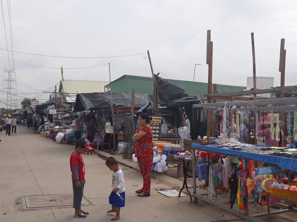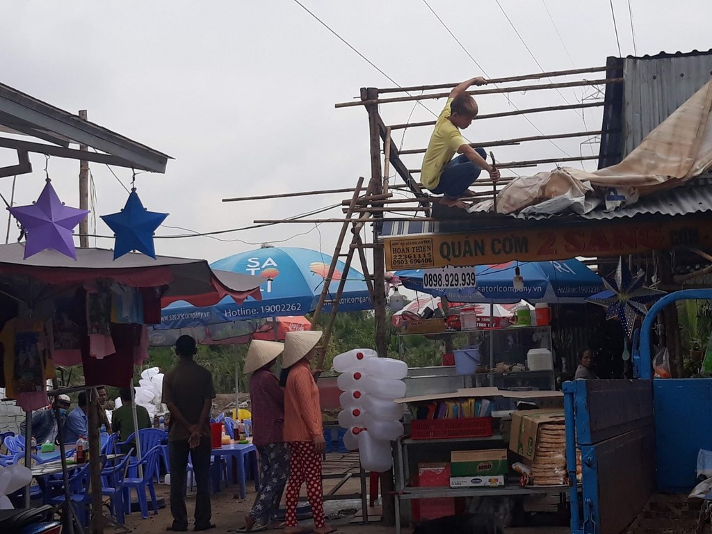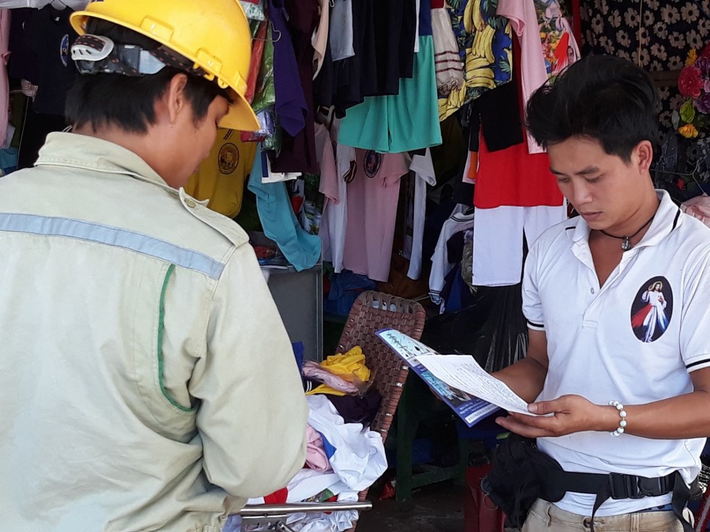 Người dân đang xây dựng hàng quán bên lối vào Giáo điểm Tin Mừng được đội Nhà Bè tuyên truyền, thực hiện ký cam kết.