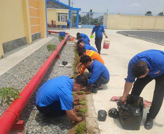Thanh niên TTĐMT1 hưởng ứng phong trào trồng cây tại Trạm 220kV Vĩnh Châu.