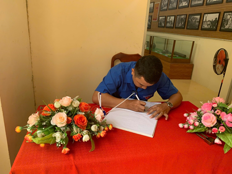 Đại diện Thanh niên TTĐMT1 ghi những dòng cảm nghĩ đối với các anh hùng liệt sĩ vào sổ nhật ký khu di tích