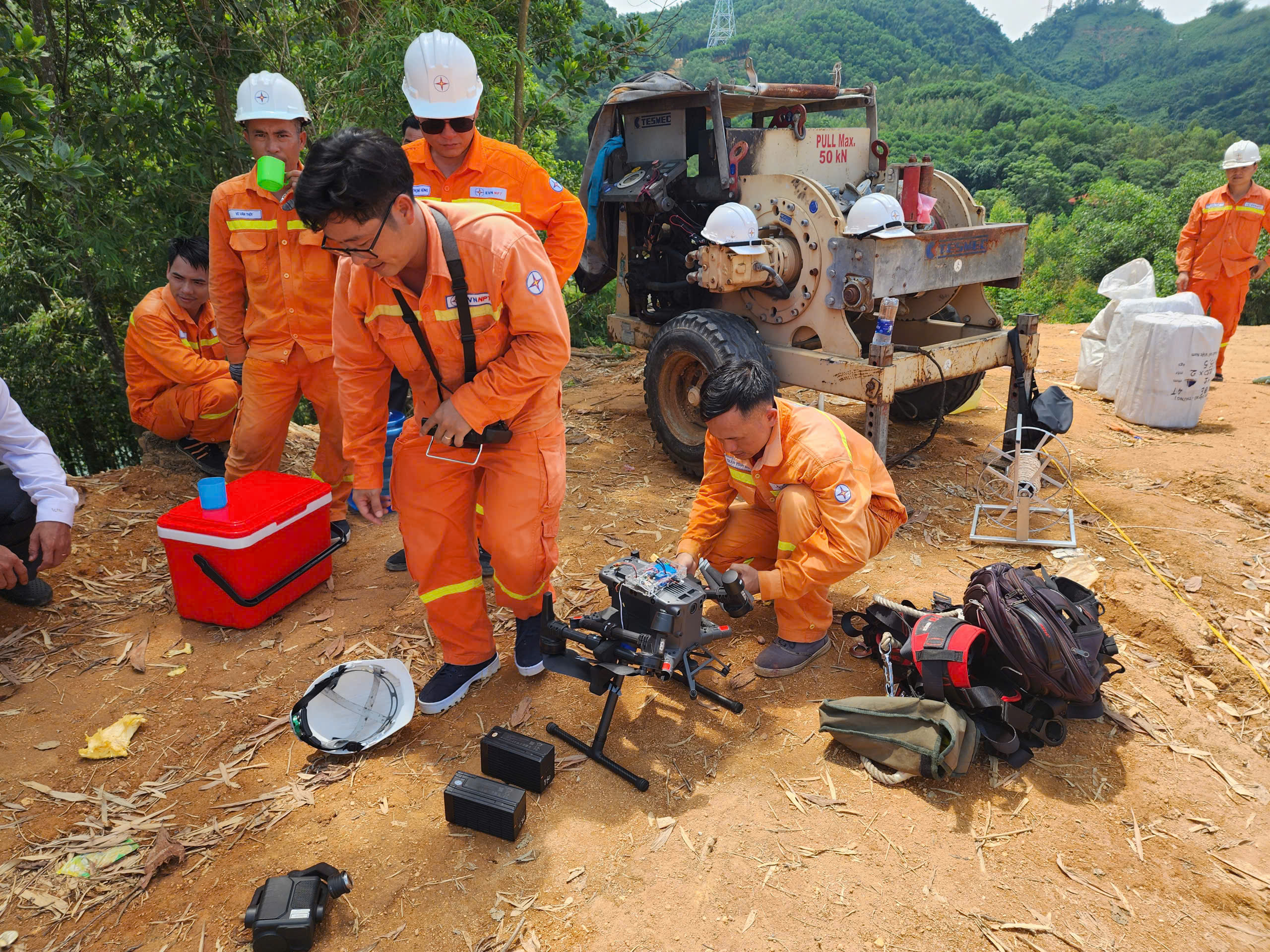 Đội Truyền tải điện TP. Hồ Chí Minh 2 chuẩn bị điều khiển UAV kéo dây mồi, rút ngắn thời gian và nâng cao độ chính xác trong thi công.