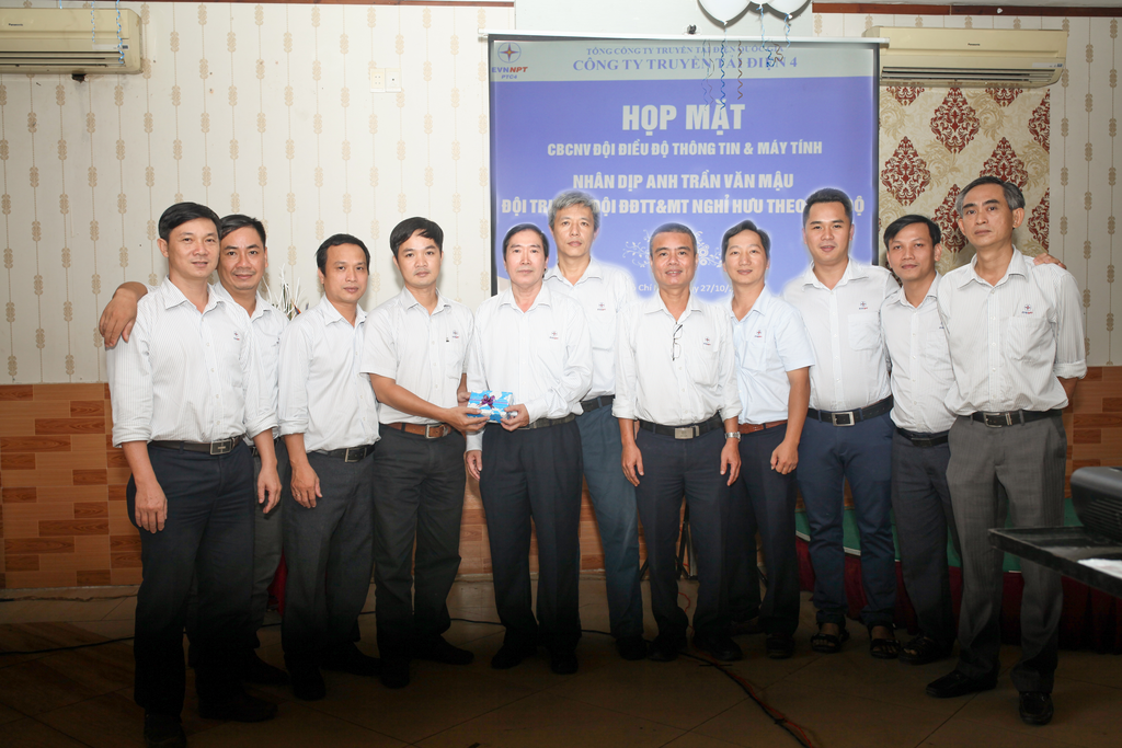 Tham dự buổi họp mặt chia tay có sự hiện diện của Ông Phan Thái Bình – Trưởng phòng Công nghệ thông tin (CNTT), Ông Hoàng Kim Thanh – Phó phòng CNTT, Ông Lê Văn Hoàng – Trưởng phòng Vật tư, nguyên Đội trưởng Đội ĐĐTT-MT, các anh em đơn vị bạn Trung tâm Điều Độ Hệ thống điện miền Nam (A2), các đoàn thể, các tổ trưởng sản xuất, Phó Trung tâm điều khiển xa (TTĐKX), tổ trưởng Công đoàn, toàn thể CBCNV Đội ĐĐTT-MT và các CBCNV từng làm việc tại Đội ĐĐTT-MT.