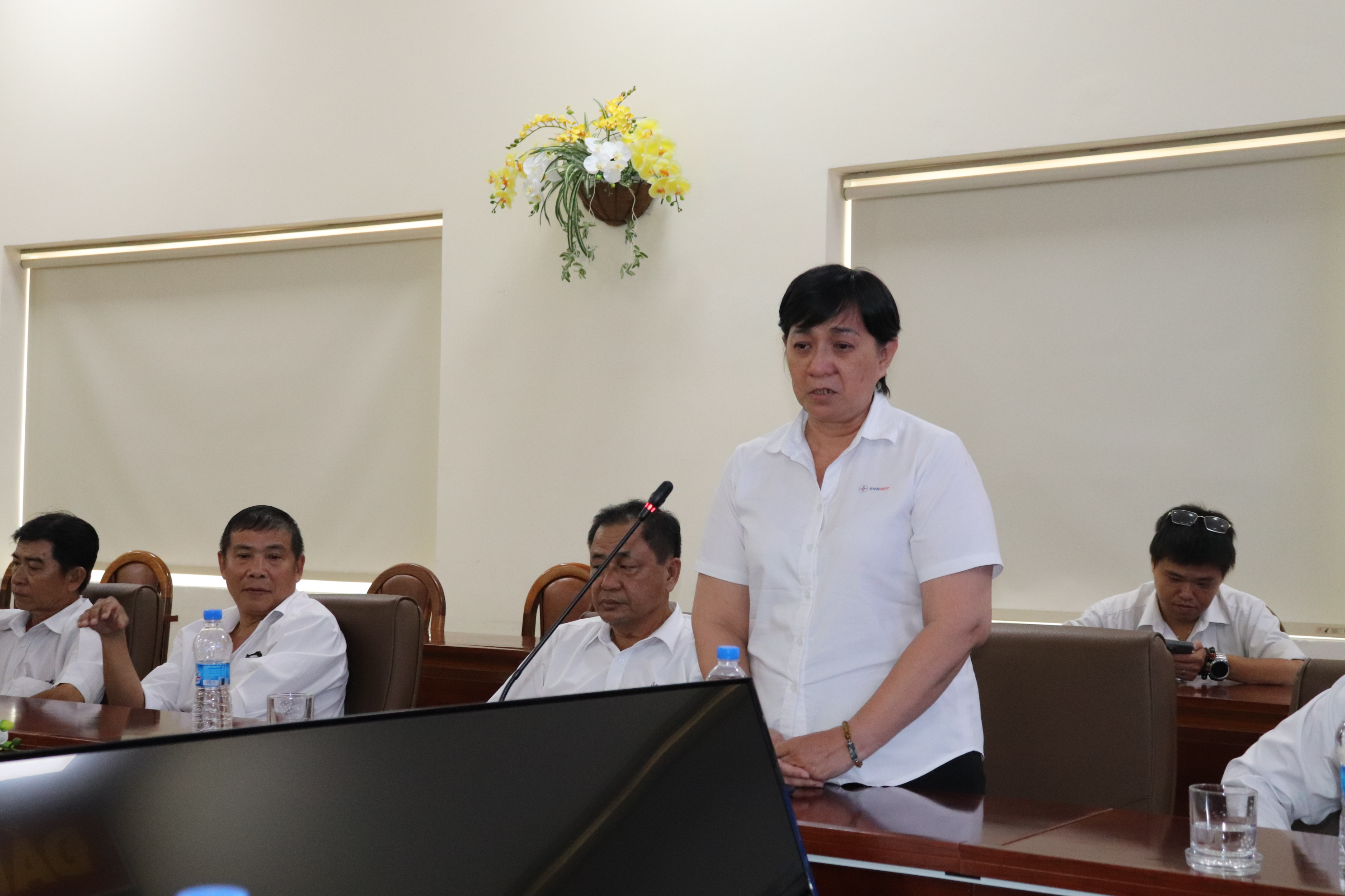 Chị Nguyễn Thị Thanh Loan đại diện CBCNV nghỉ hưu phát biểu cảm nghĩ tại buổi gặp mặt