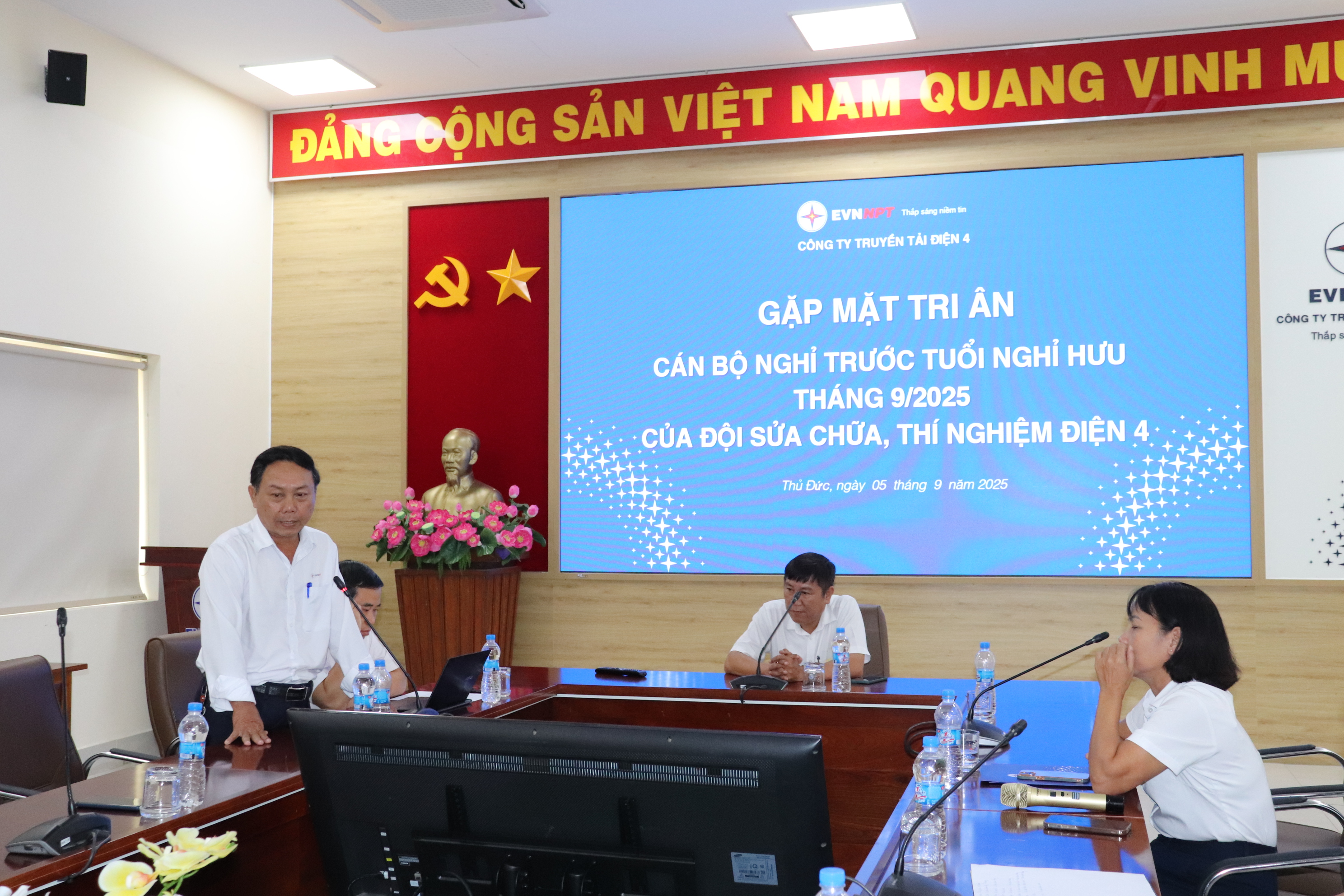 Đại diện các CBCNV nghỉ hưu, chị Nguyễn Thị Thanh Loan – nhân viên nghiệp vụ Tổ Vận tải – xúc động chia sẻ niềm tự hào khi được gắn bó với ngành Truyền tải điện, đồng thời gửi lời cảm ơn đến Ban Lãnh đạo Công ty, Ban Lãnh đạo Đội SCTNĐ4 cùng đồng nghiệp đã luôn quan tâm, đồng hành trong suốt quá trình công tác. Chị bày tỏ niềm tin tưởng Công ty Truyền tải điện 4 sẽ tiếp tục phát triển vững mạnh, khẳng định vị thế trong sự nghiệp truyền tải điện Quốc gia.i.