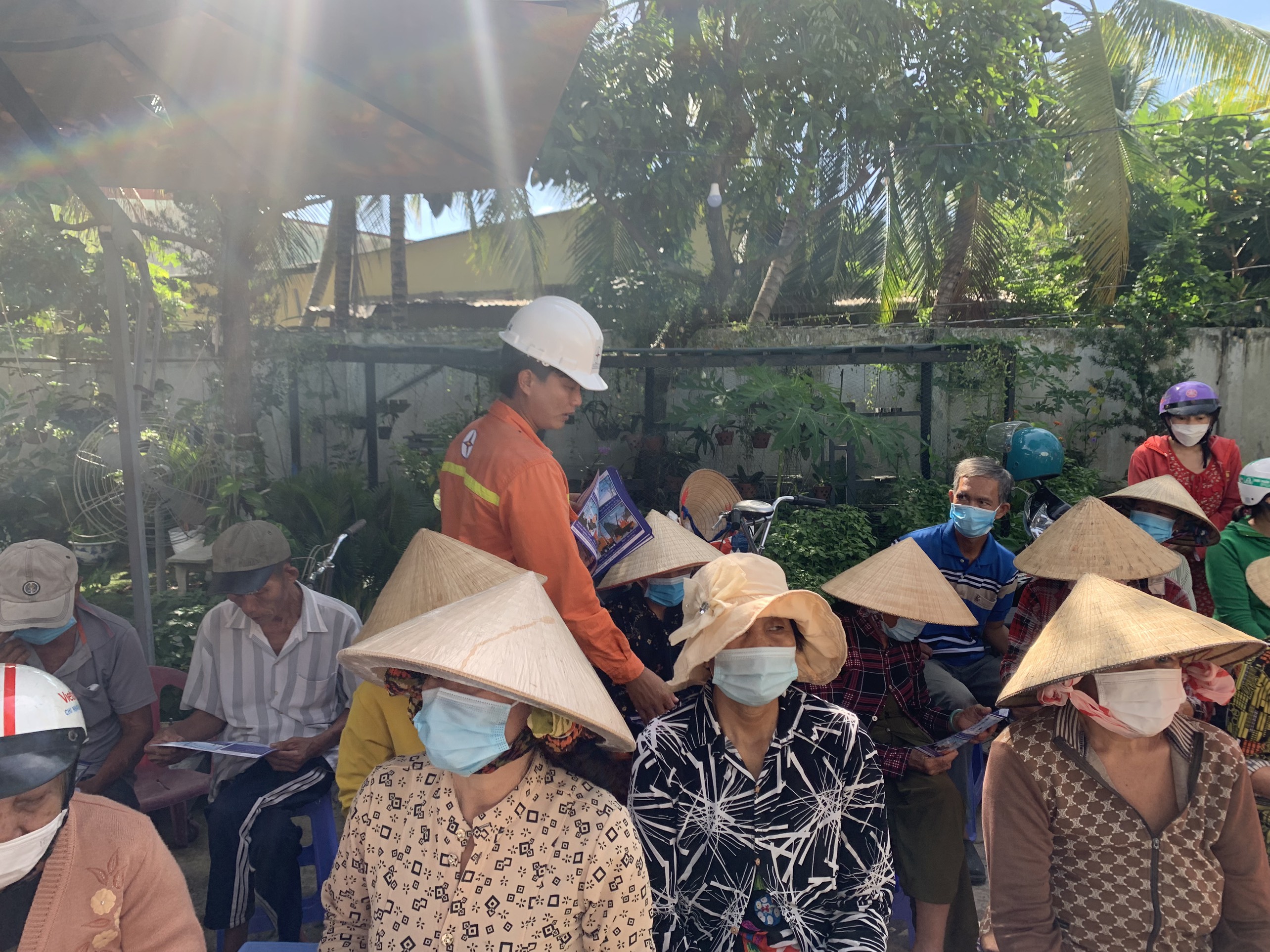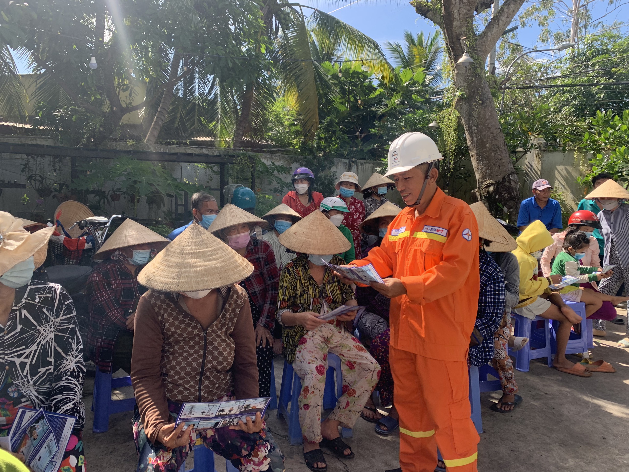 Phát tờ rơi tuyên truyền cho người dân và học sinh nghèo trong buổi phát quà
