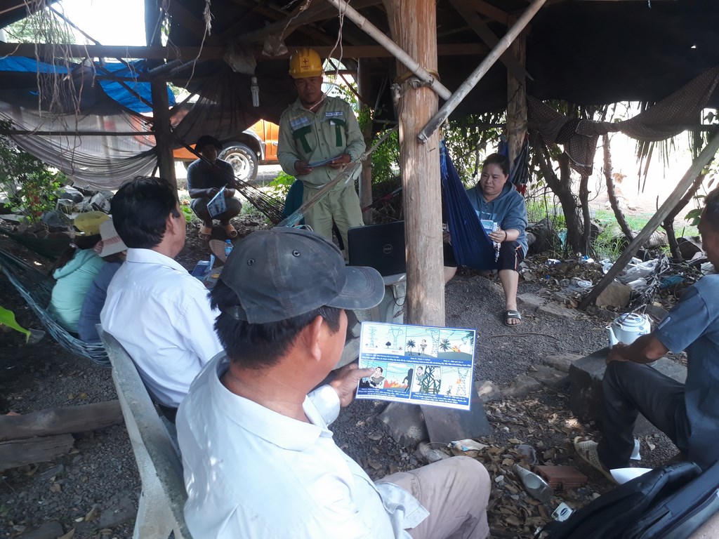 Phổ biến nội dung các tờ rơi tuyên truyền cảnh báo về các nguy cơ gây sự cố cho hành lang lưới điện cao áp.