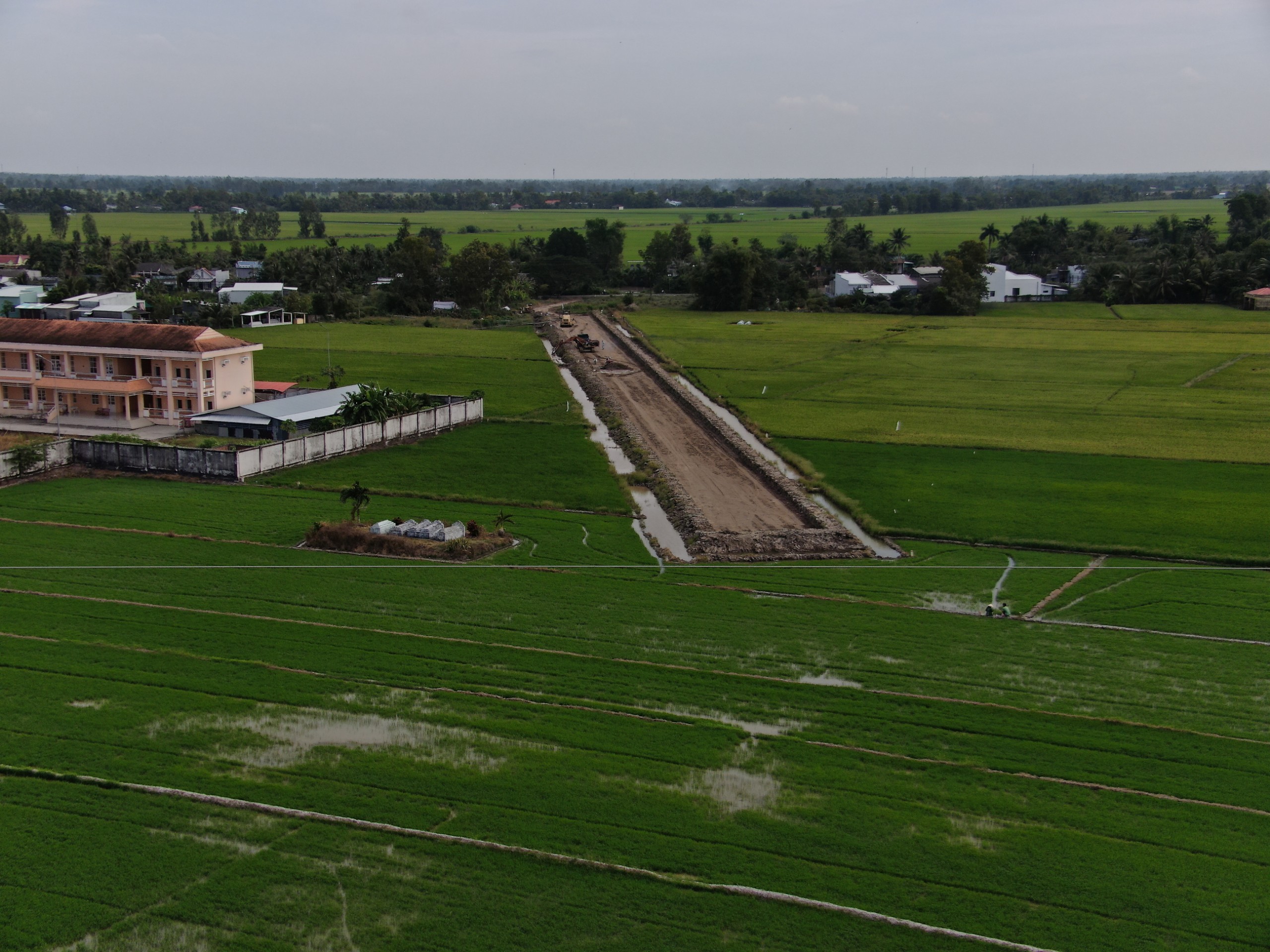 Sử dụng UAV Matric 300 kiểm tra tiến độ thi công đường cao tốc Bắc – Nam phía Đông giao chéo với đường dây 220kV NMĐ Cà Mau – Sóc Trăng đoạn 1 mạch tại khoảng cột 143 - 144
