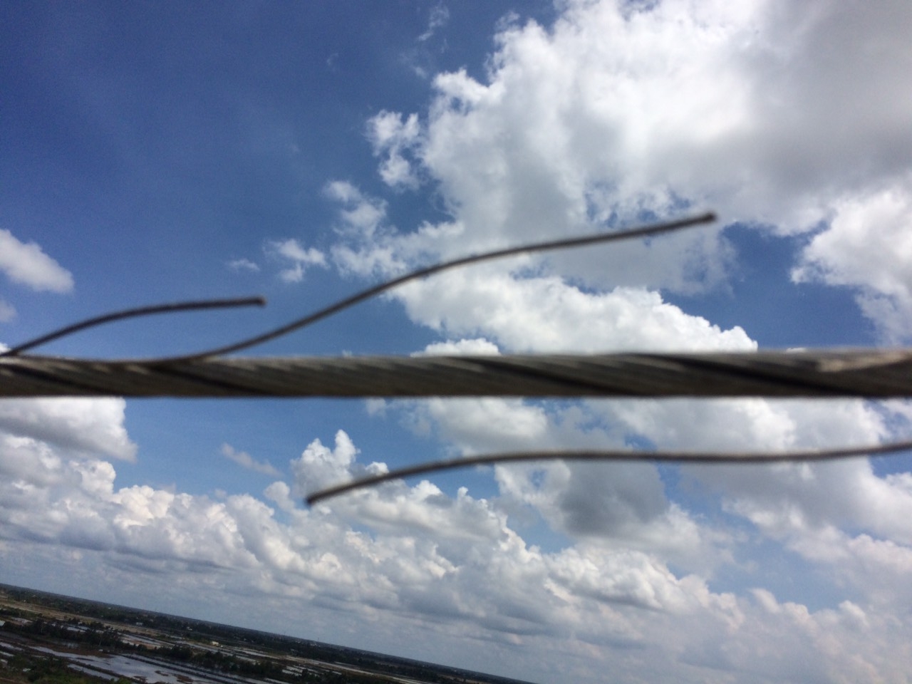 Trong quá trình kiểm tra đường dây 220kV NMĐ Cà Mau – Bạc Liêu 2 mạch, tại khoảng cột 103 – 104, Đội phát hiện dây chống sét Phlox 94.1 bị tưa một số sợi cùng 1 vị trí, các sợi bị tưa đứt bung về 2 phía khoảng 1m. Sau khi phát hiện Đội đã sử dụng Flycam để kiểm tra xác định tình hình hư hỏng và nguyên nhân. Đội đã xác định chính xác tình trạng tổn thương của dây chống sét là đứt 02/19 sợi chịu lực.