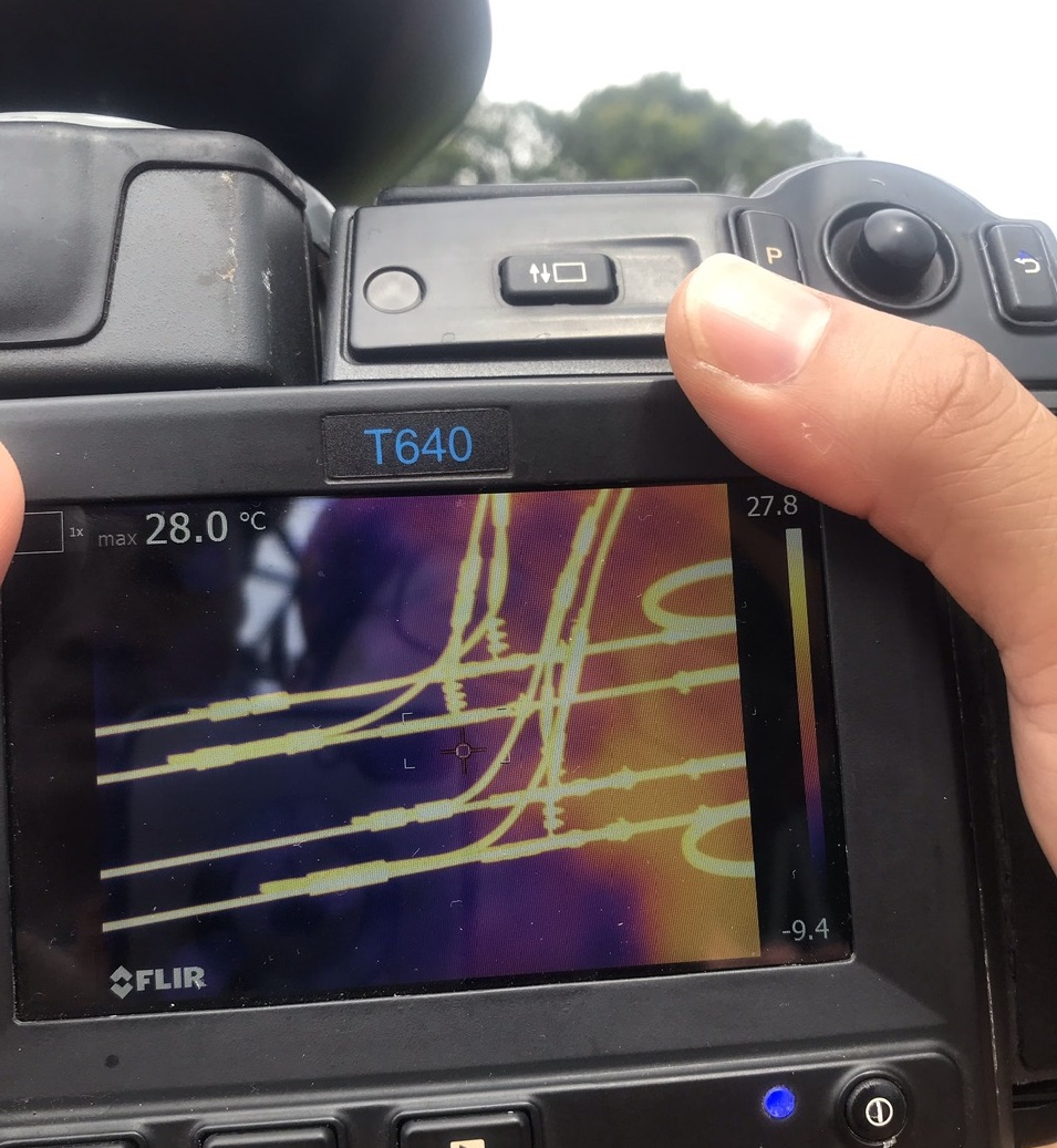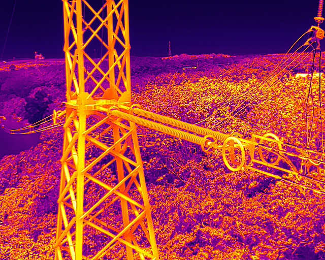 Sử dụng UAV có chức năng đo chụp ảnh nhiệt để kiểm tra chuỗi cách điện (ảnh tại vị trí néo 3097 đường dây 500kV Đắk Nông – Cầu Bông).