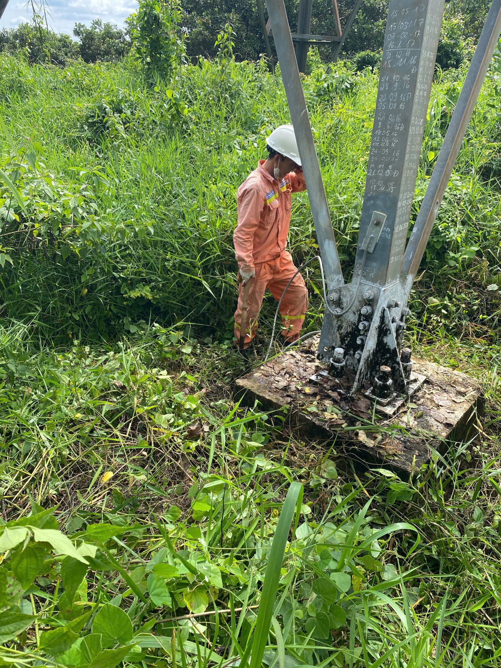 Kiểm tra, phát quang cây cỏ tạp xung quanh chân cột, kiểm tra móng cột 3109 ĐDK 500kV Đắk Nông – Cầu Bông.